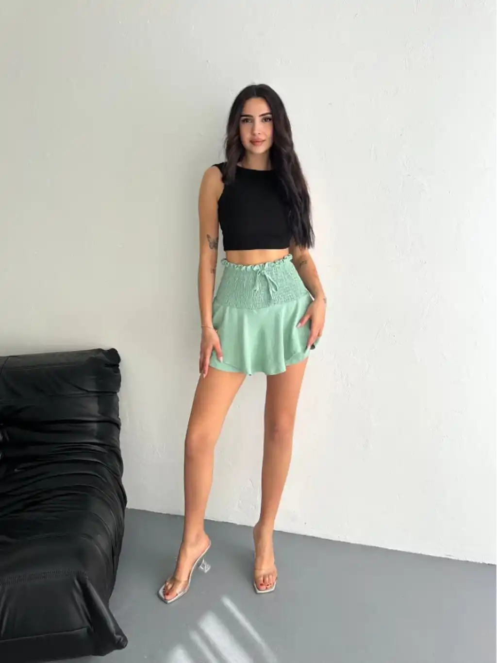 Çepli Şortlu Yırtmaçlı Etek - Beyaz