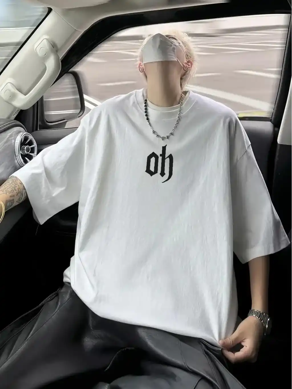 Baskı Erkek Oversive Tişört, Grafik Tişört Erkek Yazlık Outdoor Kıyafetleri, Sporda ve Günlük Giyime Uygun - Beyaz