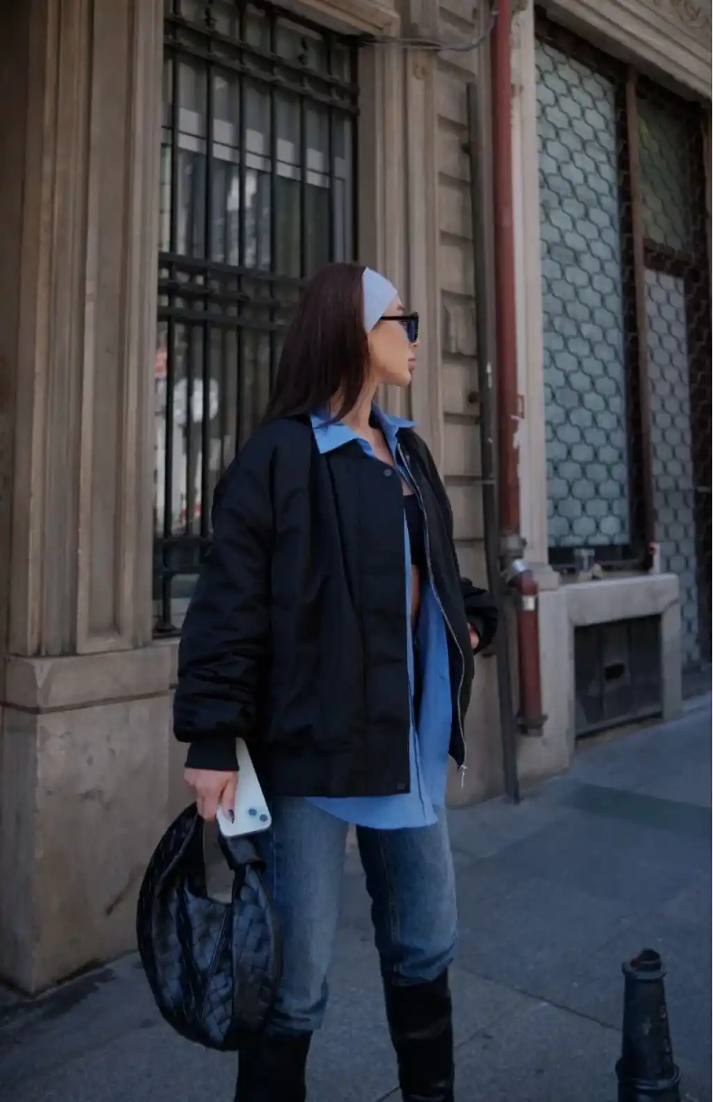Kadın Bomber Mont Ceket – Su İtici Kumaş, Kapitone Astarlı, Fermuarlı, Kışlık - Siyah