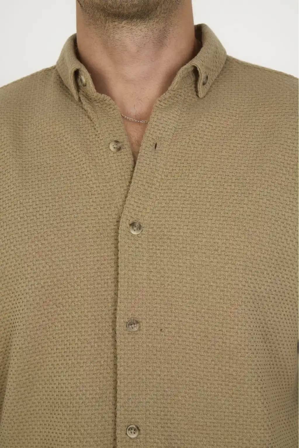 Düğmeli Tam Kalıp Uzun Kol Jakar Gömlek - Kahverengi
