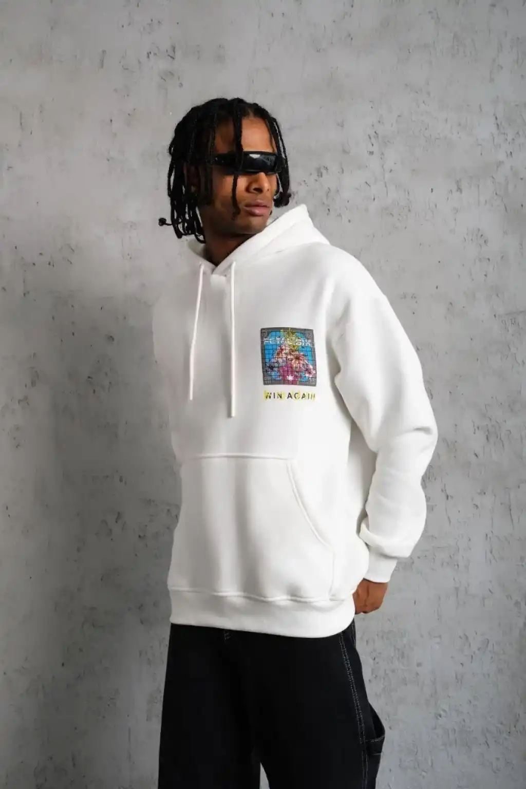 Erkek Patel Six Baskılı Kapüşonlu Sweat - Beyaz