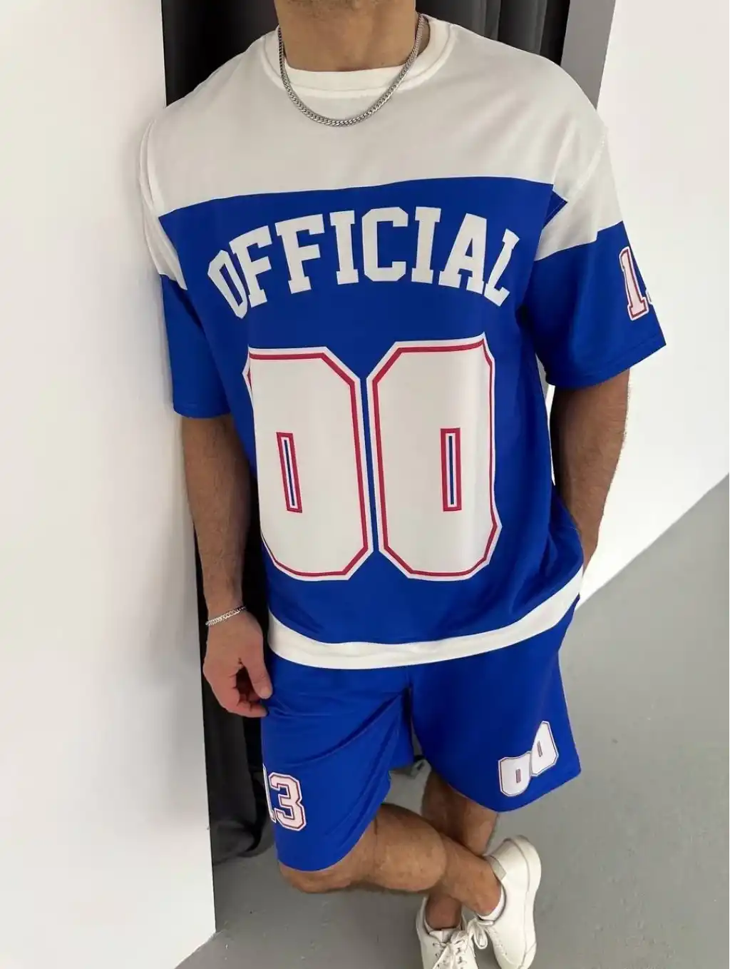 Erkek Şortlu Takım – Oversize İki İplik Kumaş, Ön & Arka Dijital Baskılı Tişört ve Lastikli Cepli Şort, Yazlık Günlük Spor Set - Mavi