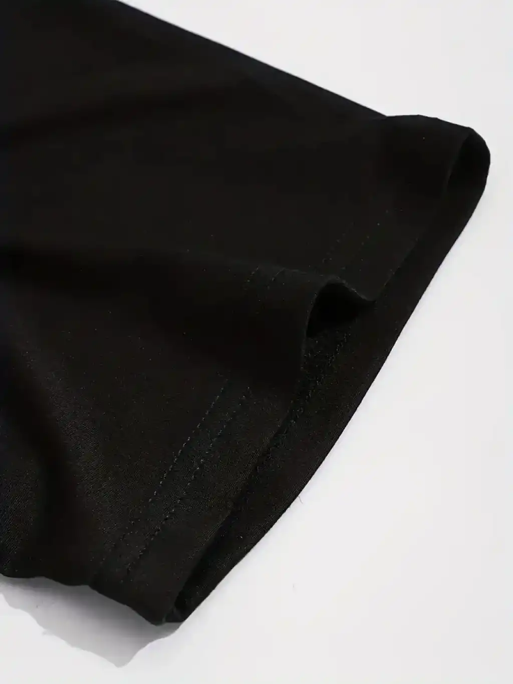 Eşsiz Baskı Tasarımlı Şık Büyük Beden Erkek Tişörtü - Rahat Polyester, Makinede Yıkanabilir, Yuvarlak Yaka - Her Mevsim İçin Mükemmel - Siyah