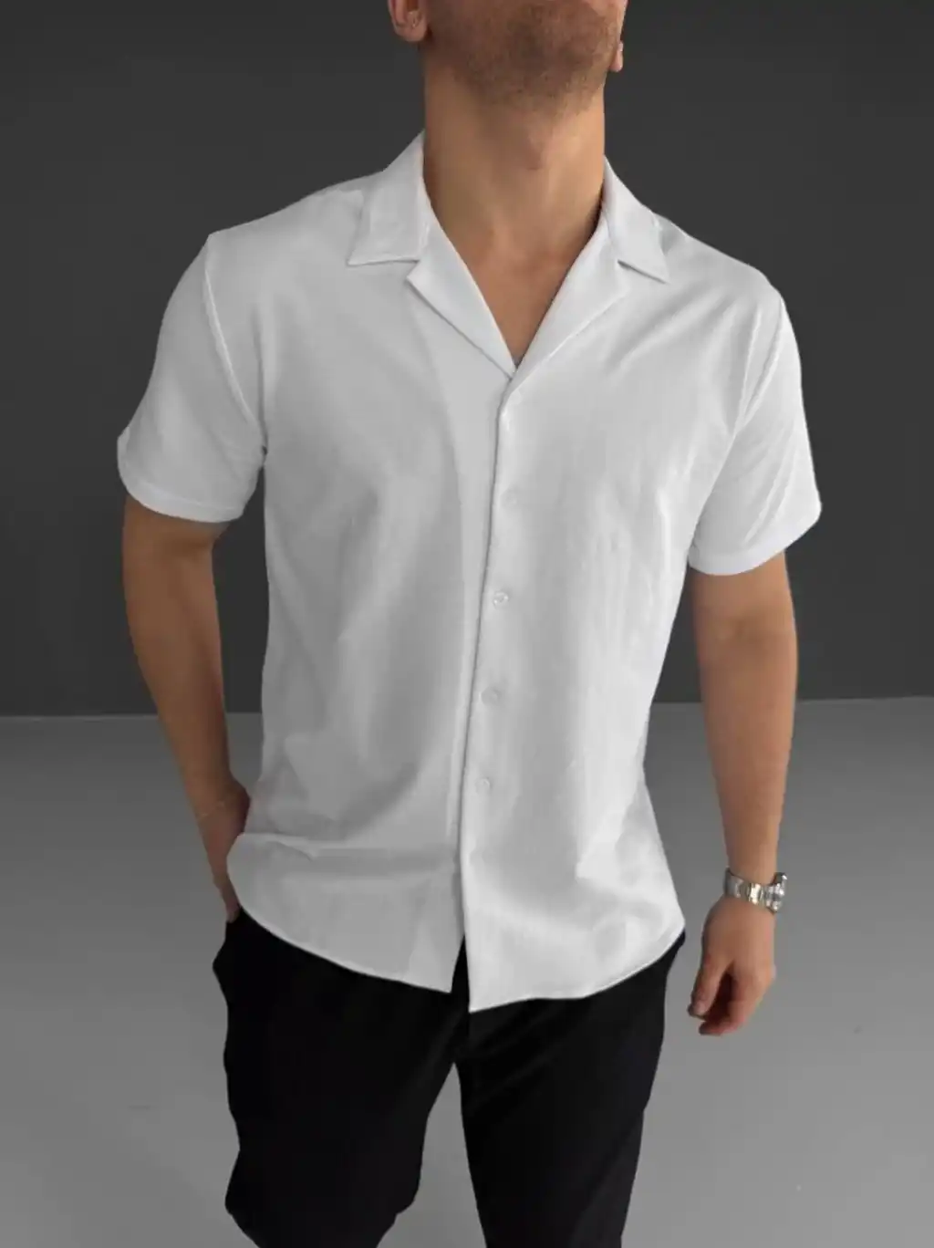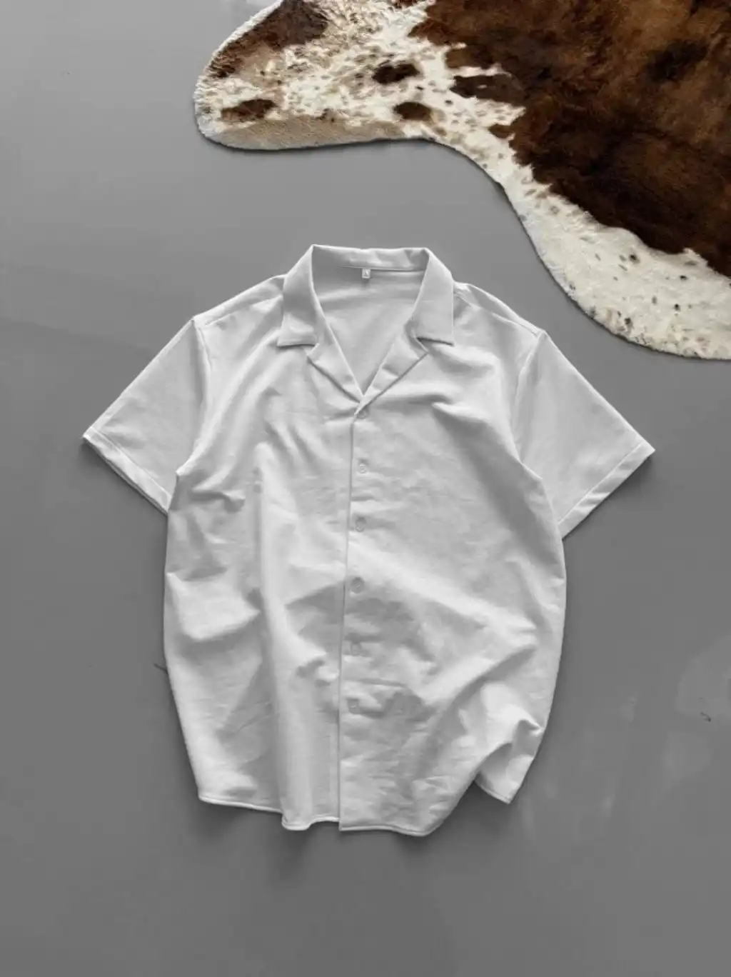İki İplik Kumaş Baskılı Gömlek - Beyaz