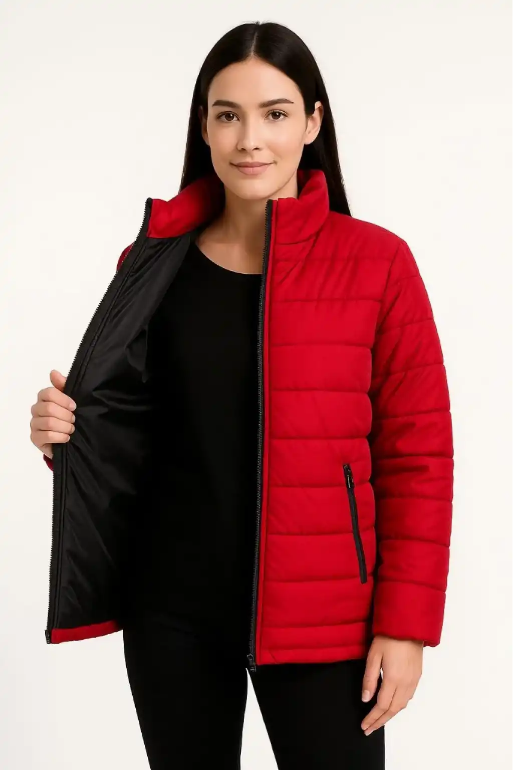 Kadın Bomber Mont Ceket – Su İtici Kumaş, Kapitone Astarlı, Fermuarlı, Kışlık - Kırmızı