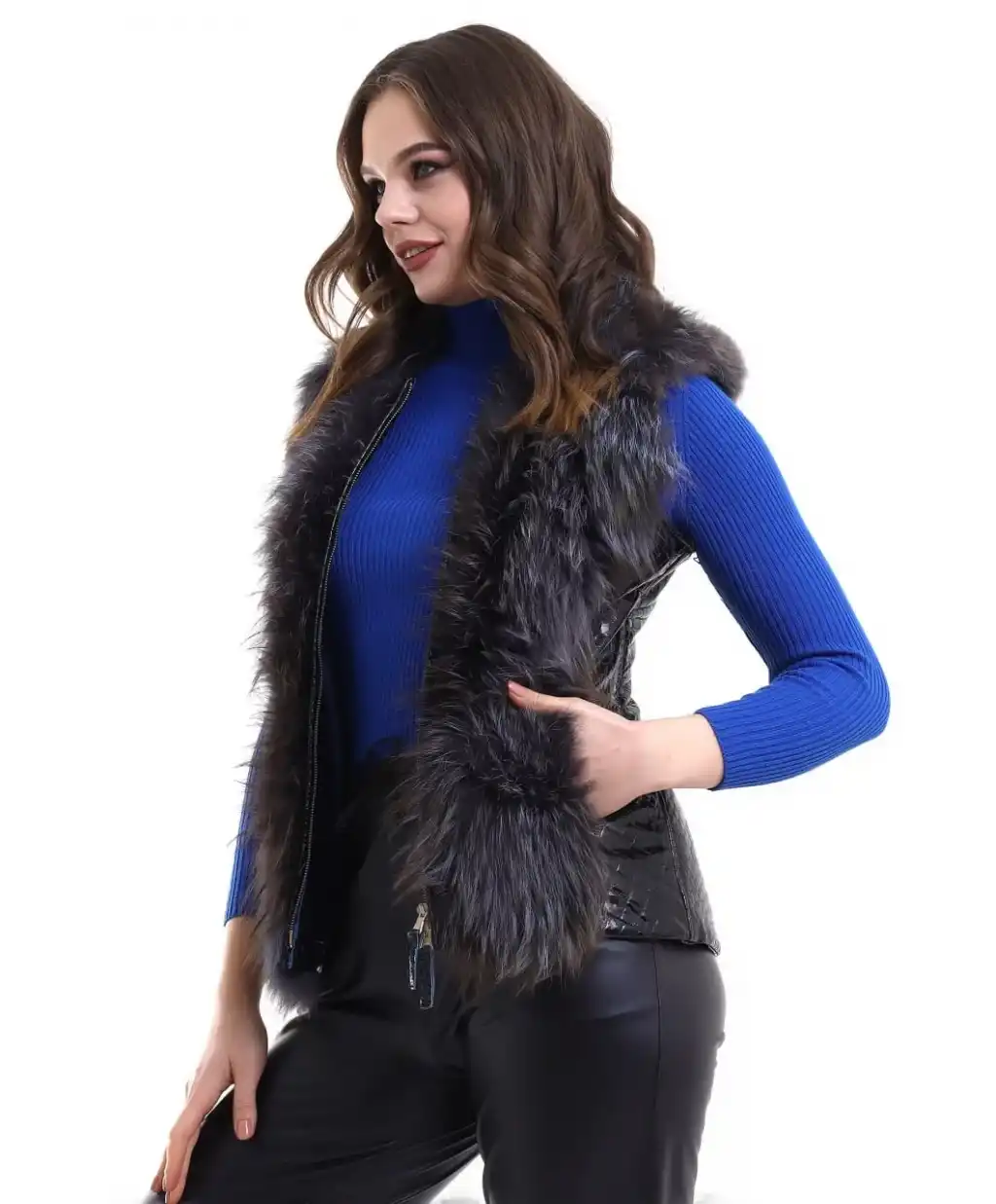 Kadın Kolsuz Hakiki Kürk - Siyah