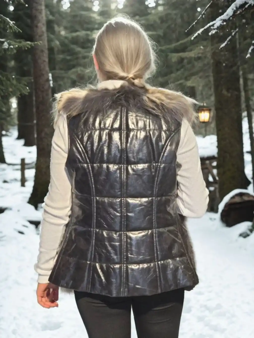Kadın Kolsuz Hakiki Kürk - Siyah