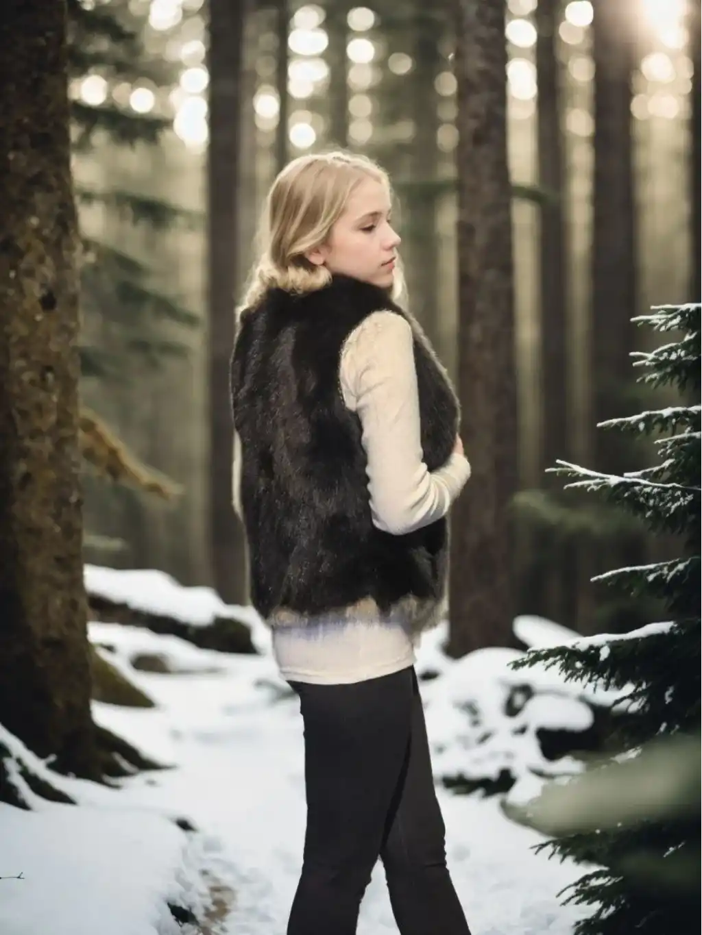 Kadın Kolsuz Hakiki Kürk - Siyah