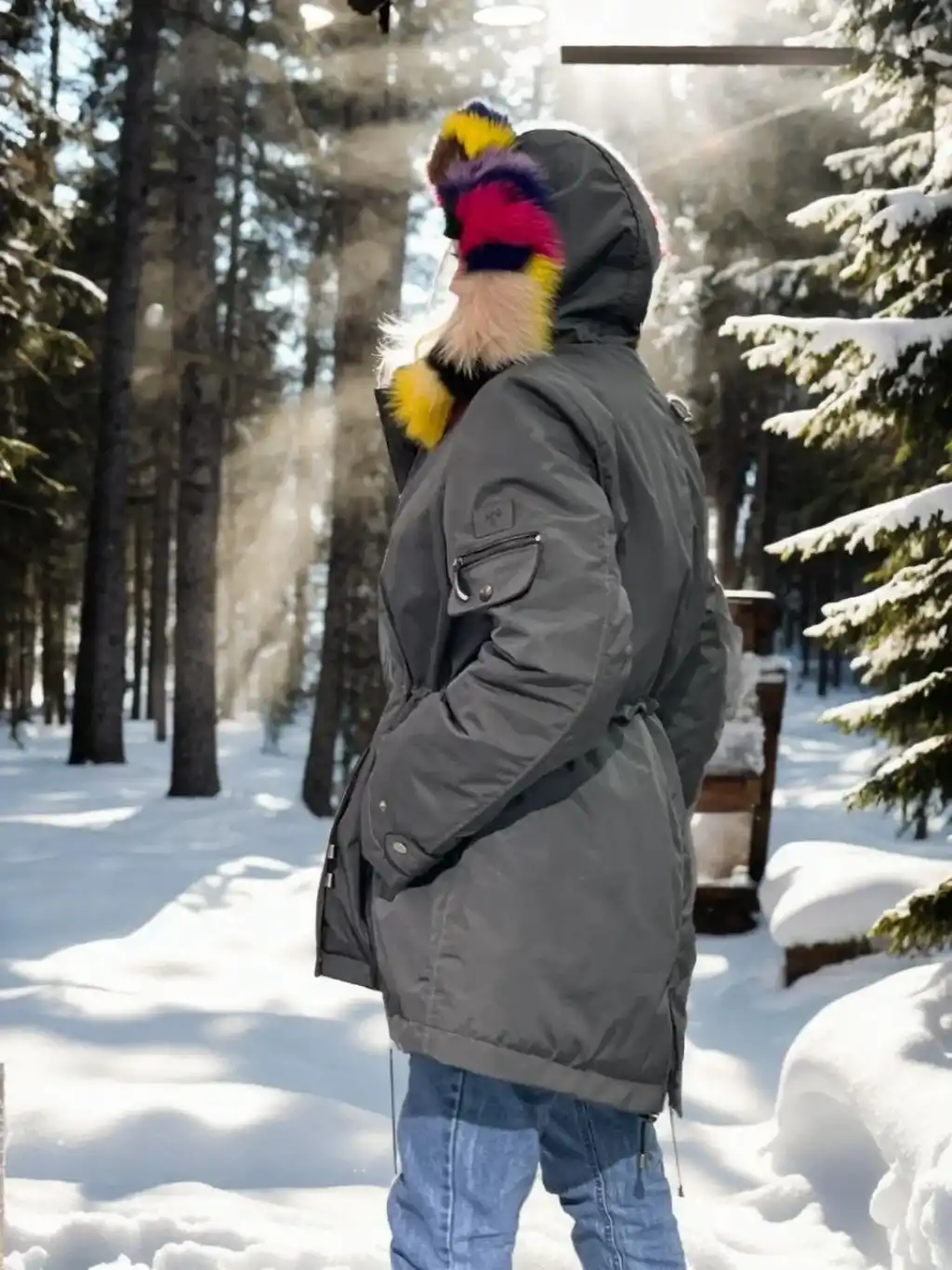 Kadın Su Geçirmez Kapüşonlu Mont - Füme