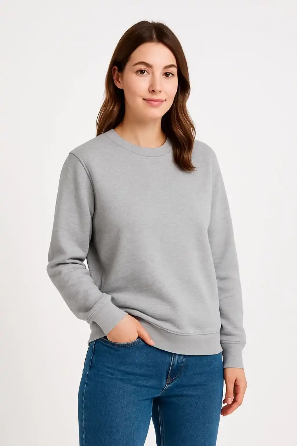 Kadın Üç İplik Düz Bisiklet Yaka SweatShirt - Gri