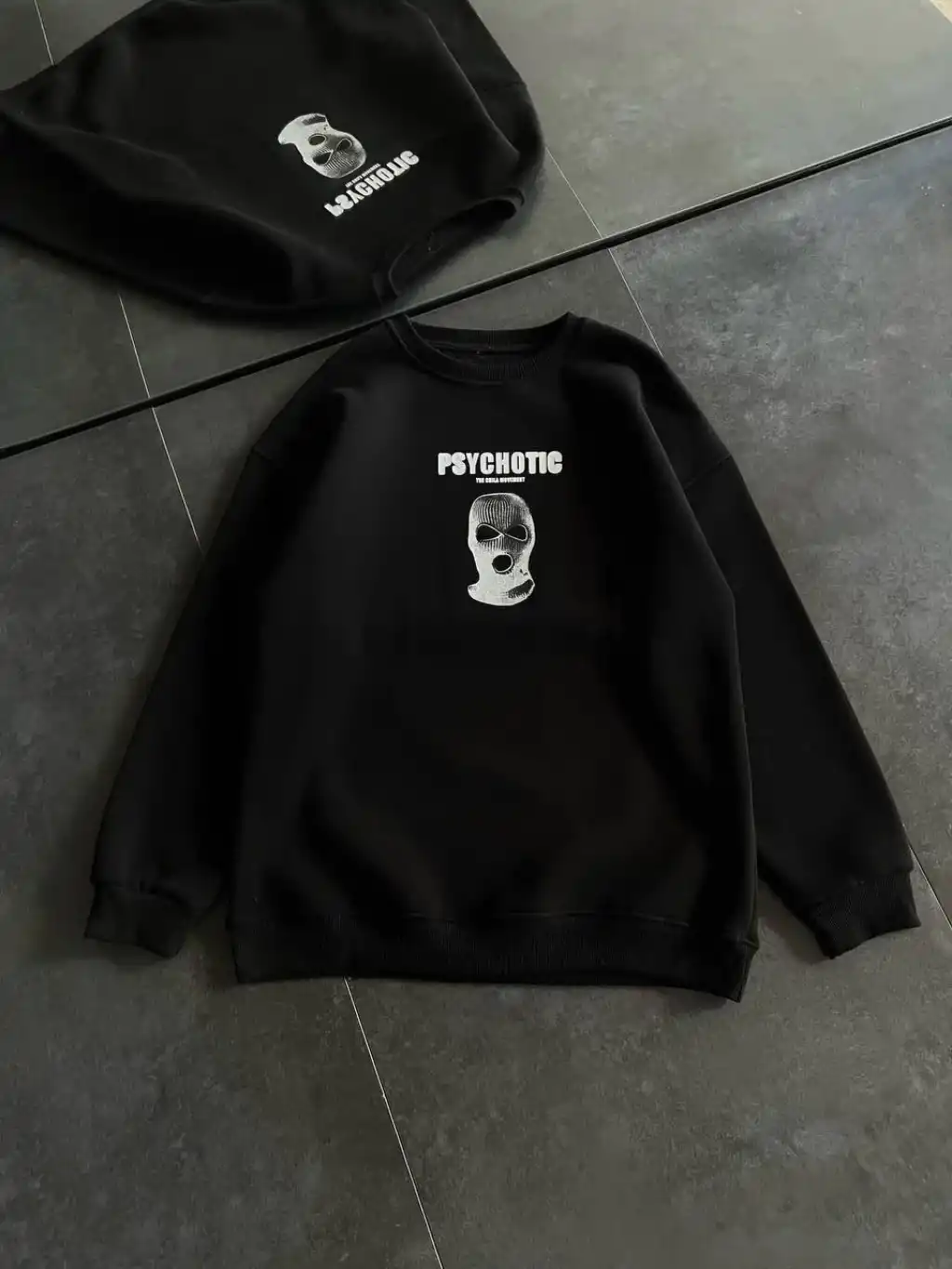 Kışlık Bisiklet Yaka Baskılı SweatShirt - Siyah
