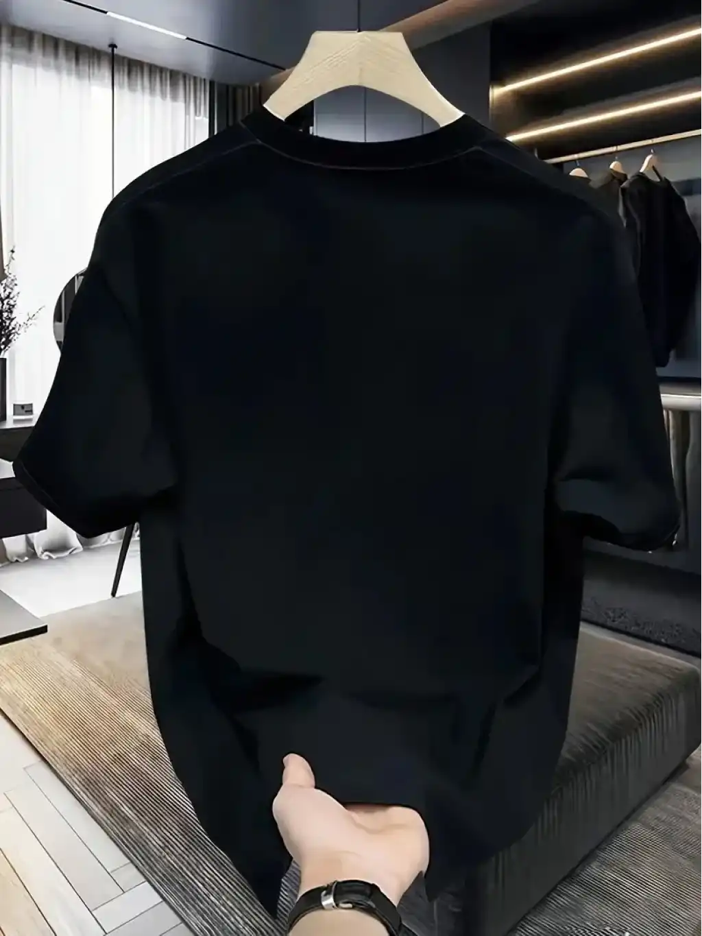 Rahat Bisiklet Yaka Tişört, Yaratıcı Karikatür Baskı - Yumuşak Polyester, Her Mevsim Giyilebilir- Siyah