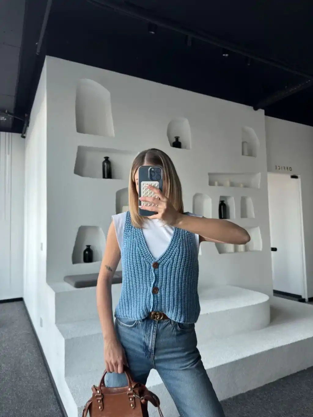 Triko Kolsuz Düğmeli Yelek - Mavi