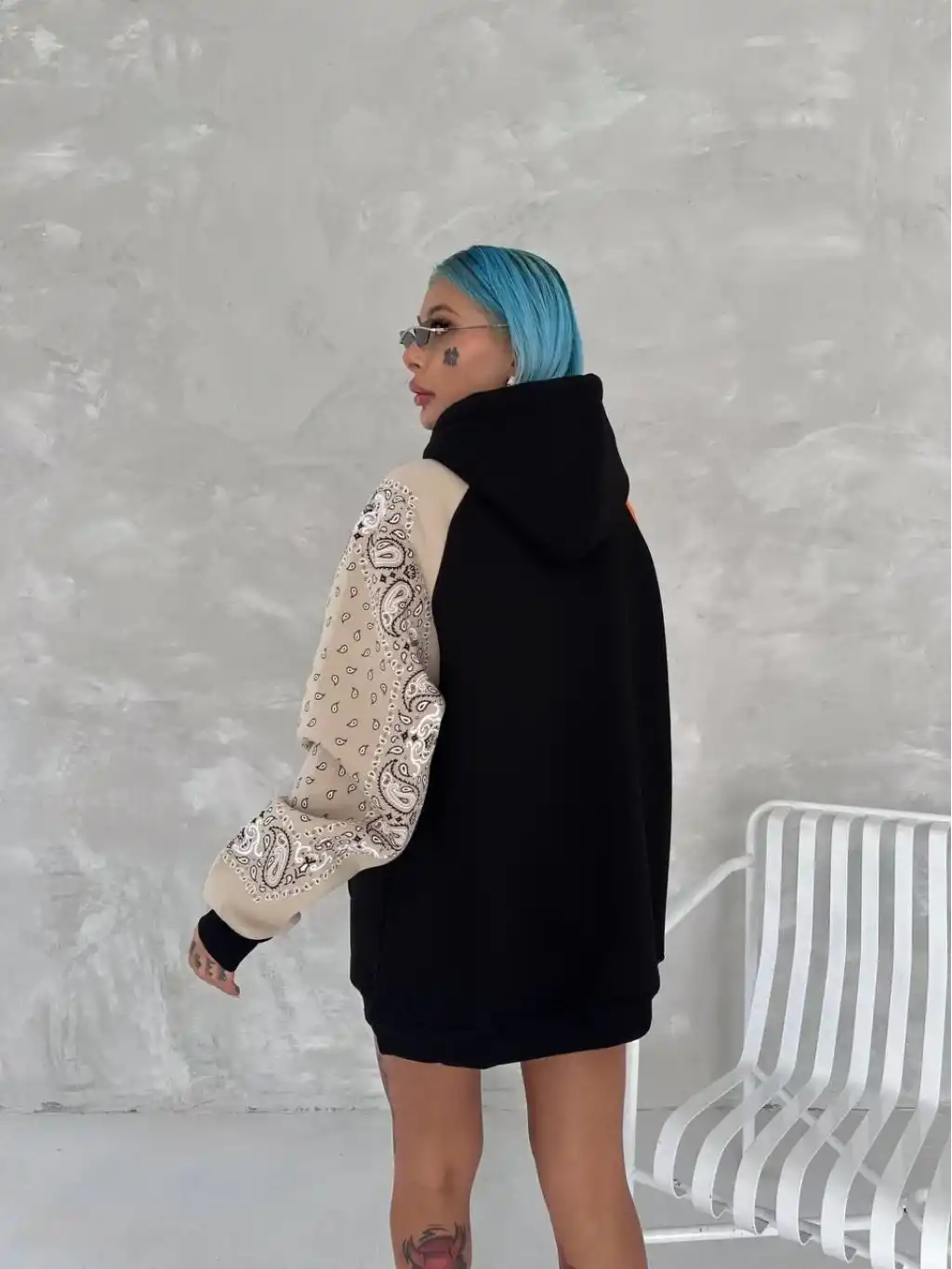 Kadın Oversize Üç İplik Kapüşonlu Sweatshirt – Siyah “Other Lives” Ön ve Arka Baskılı, Şardonlu Kışlık, Rahat Günlük Model Siyah