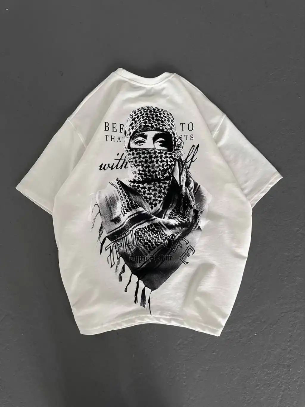 Unisex Baskılı Oversize T-Shirt - Beyaz