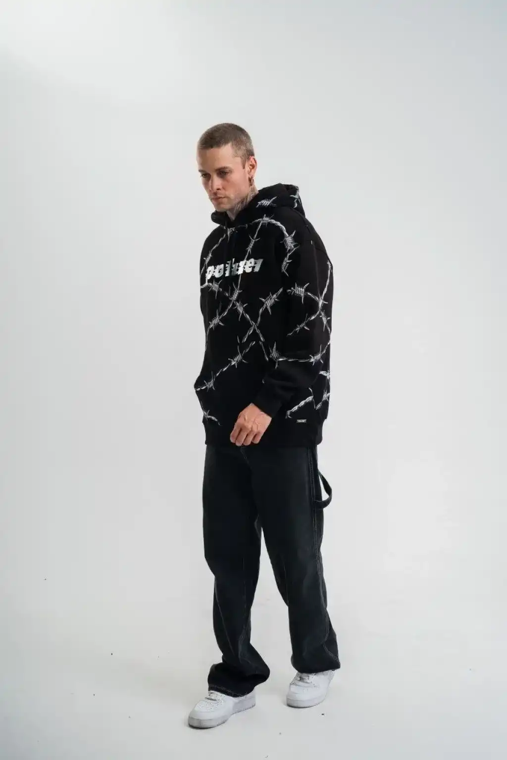 Unisex Kapşonlu Varak ve Pano Baskılı SweatShirt- Siyah