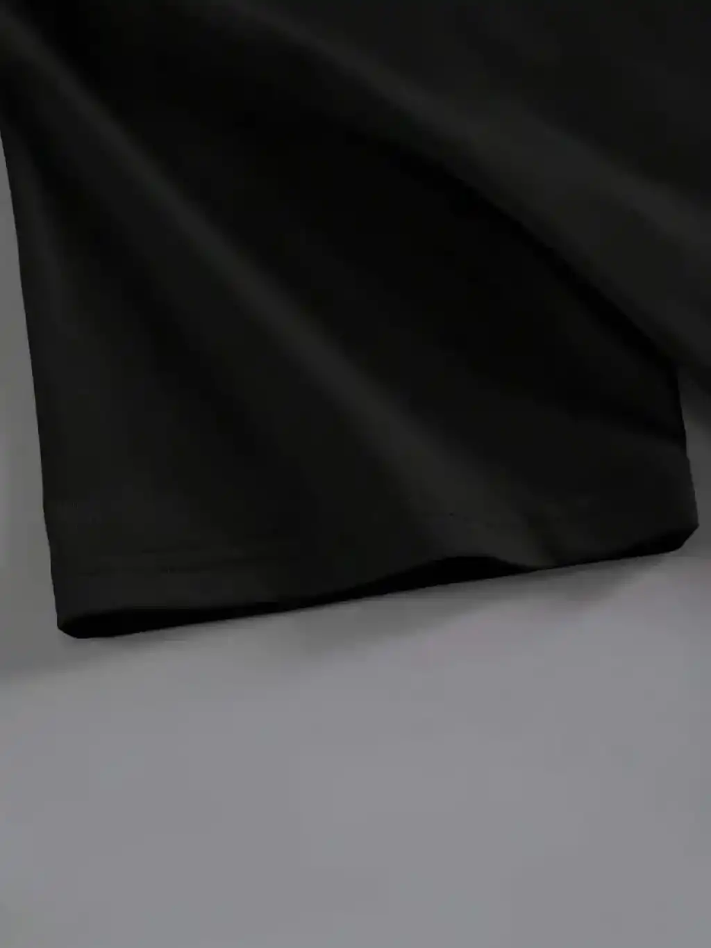 Rahat Bisiklet Yaka Tişört, Yaratıcı Karikatür Baskı - Yumuşak Polyester, Her Mevsim Giyilebilir- Siyah