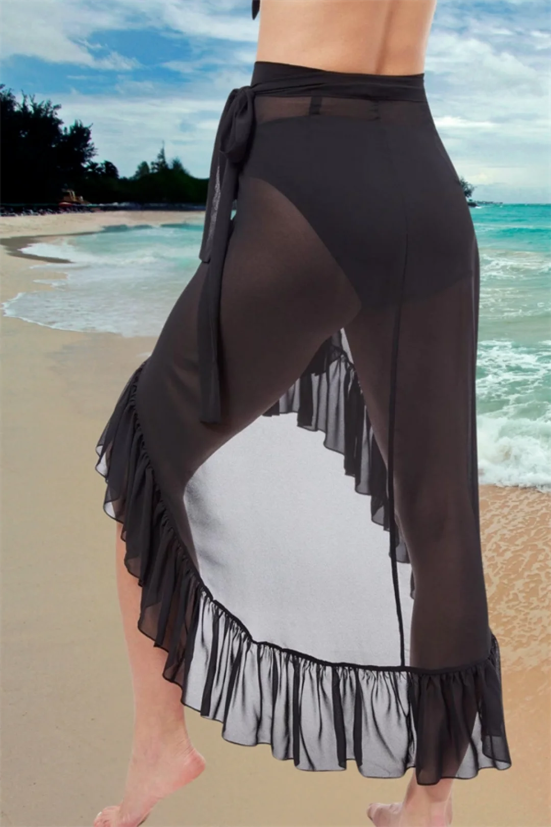 ?✨ Sade Şıklığın İddialı Yorumu: Aria's Closet Özel Tasarım Mayo Üstü Süprem Tül Yanları Fırfırlı Siyah Pareo ?