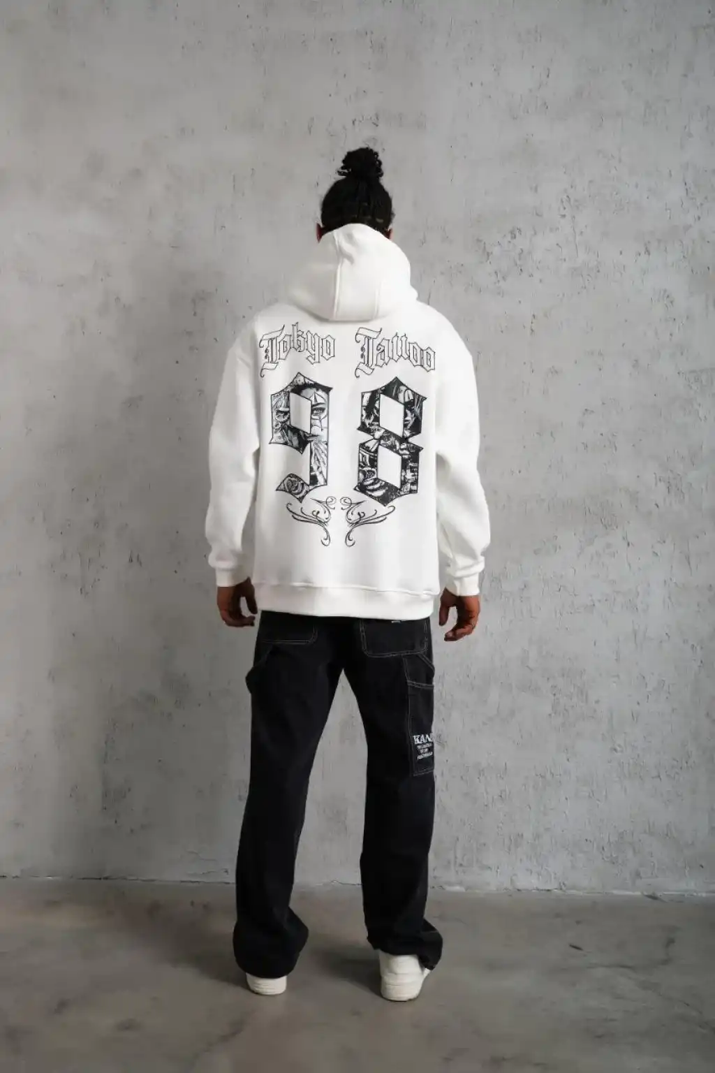 Erkek 98 Baskılı Kapşonlu Sweat - Beyaz
