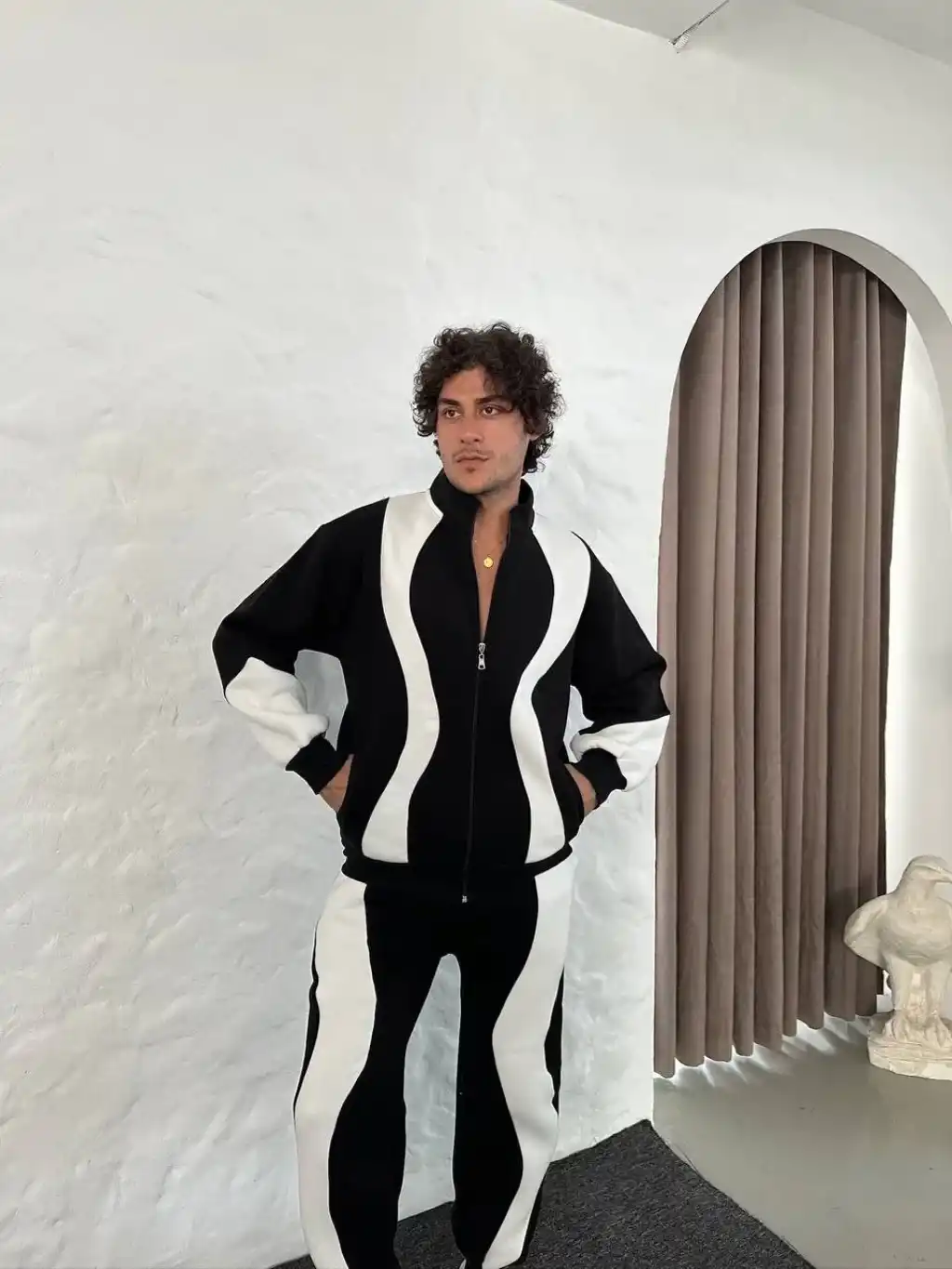 Erkek Premium Parçalı Eşofman Takım - Dik Yaka Fermuarlı Sweatshirt, - Siyah