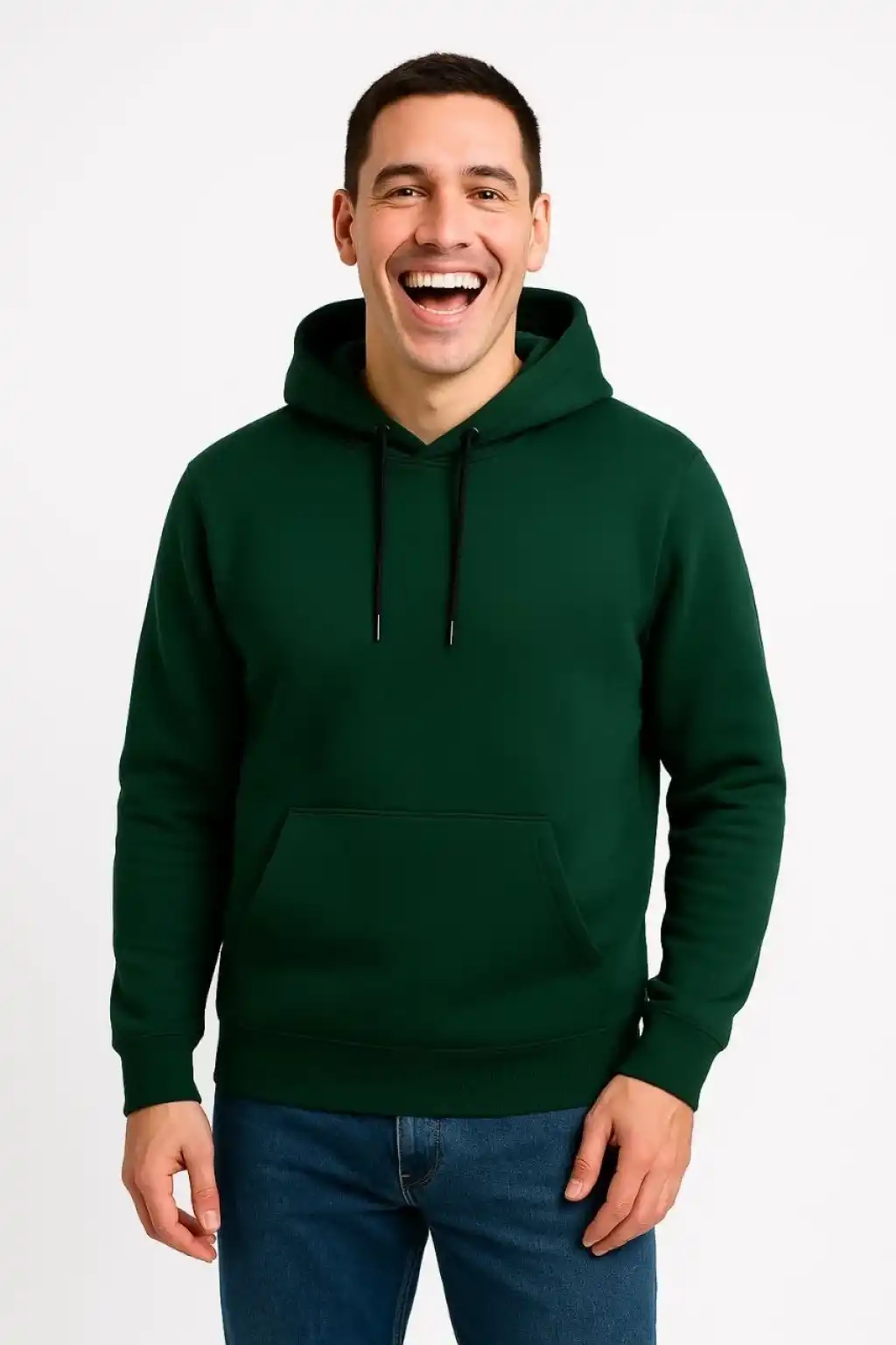 Erkek Üç İplik Kapüşonlu Kanguru Cepli SweatShirt hoodie - Haki