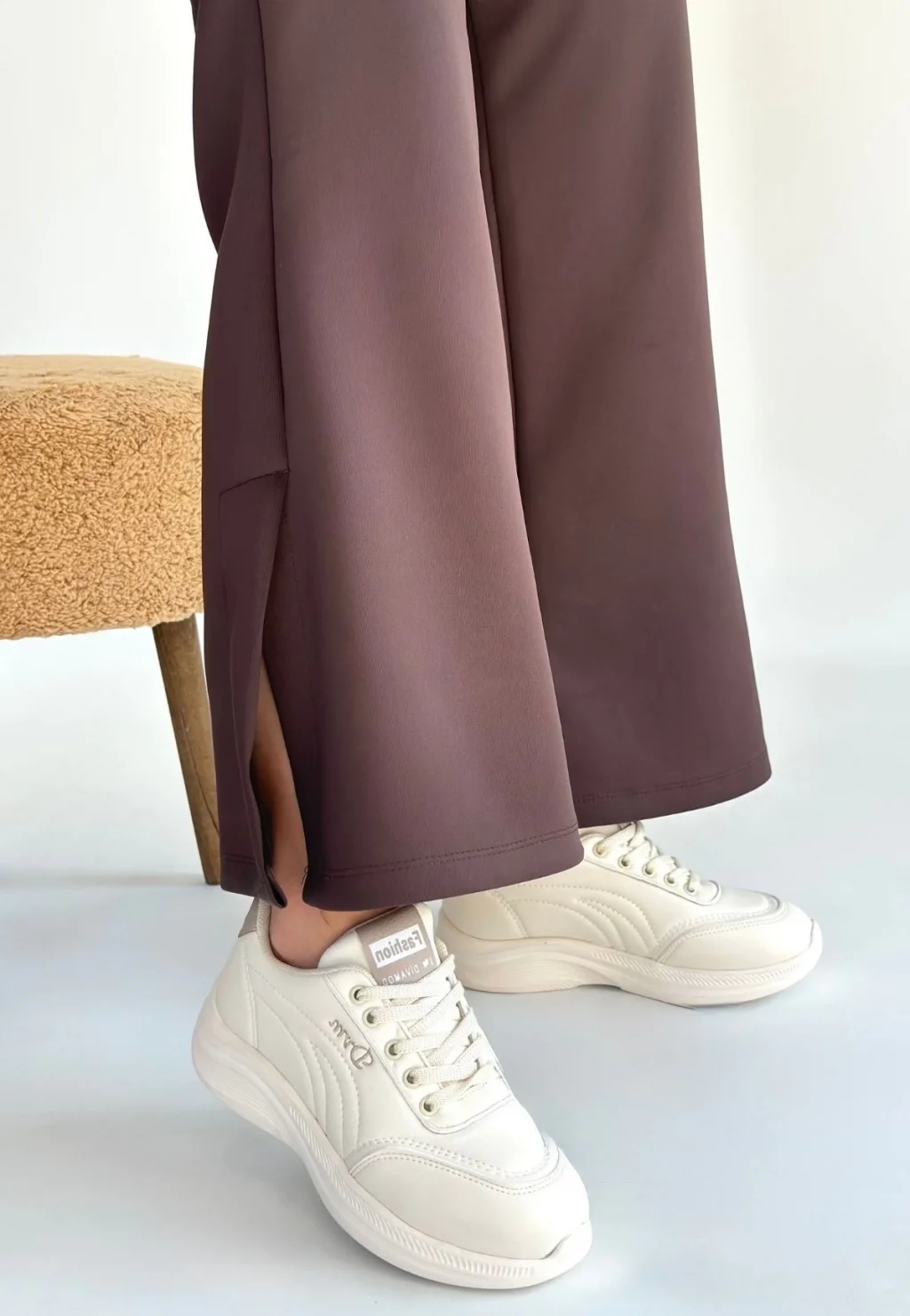 Zlay Bej Cilt Vizon Detaylı Bağcıklı Spor Ayakkabı