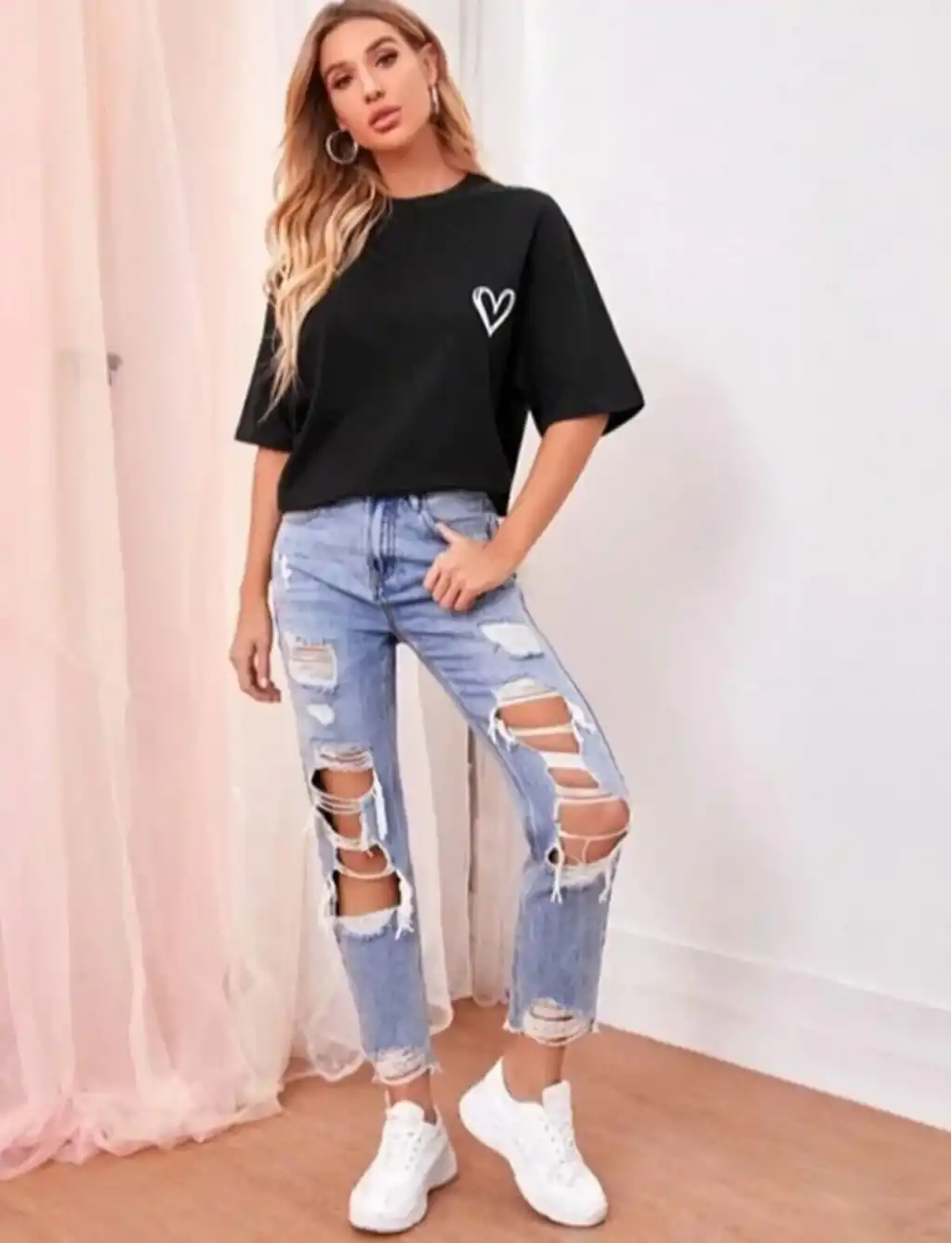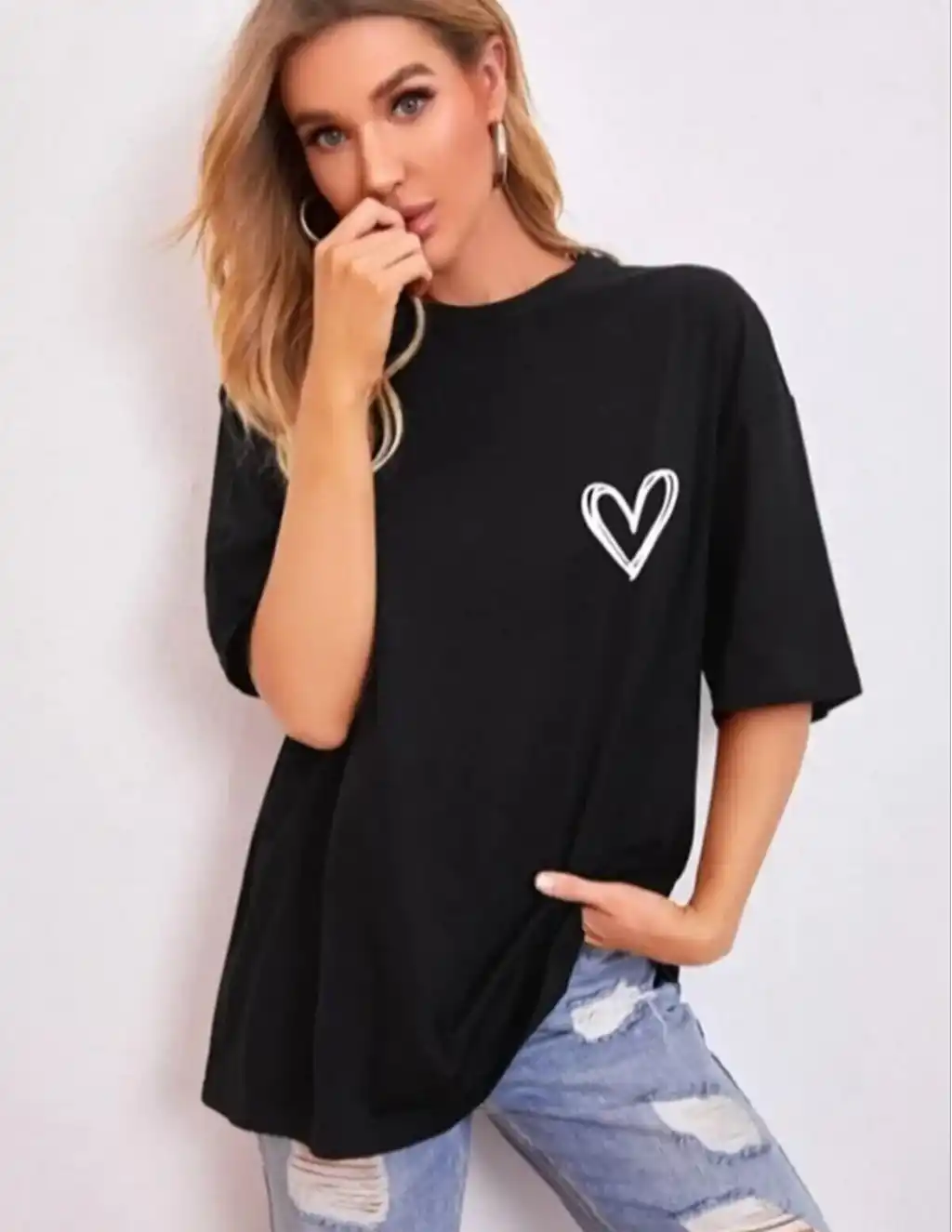 Kadınlar için Şık Leopar Kalp Baskılı Günlük Tişört - Büyük Beden, Makinede Yıkanabilir, Sevgililer Günü & Günlük Kıyafetler için Mükemmel- Beyaz