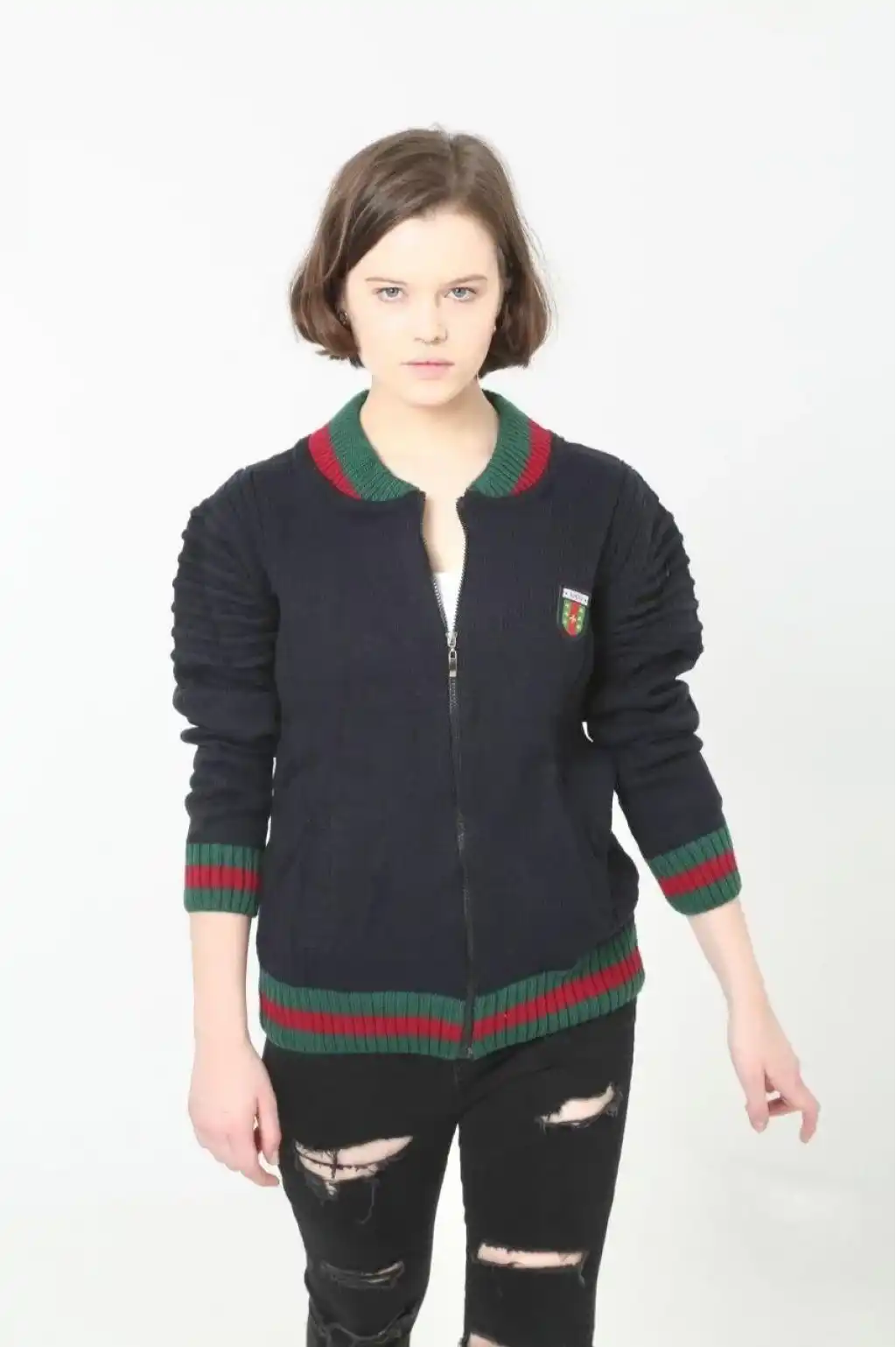 Kadın Tam Fermuarlı Triko Hırka - Lacivert