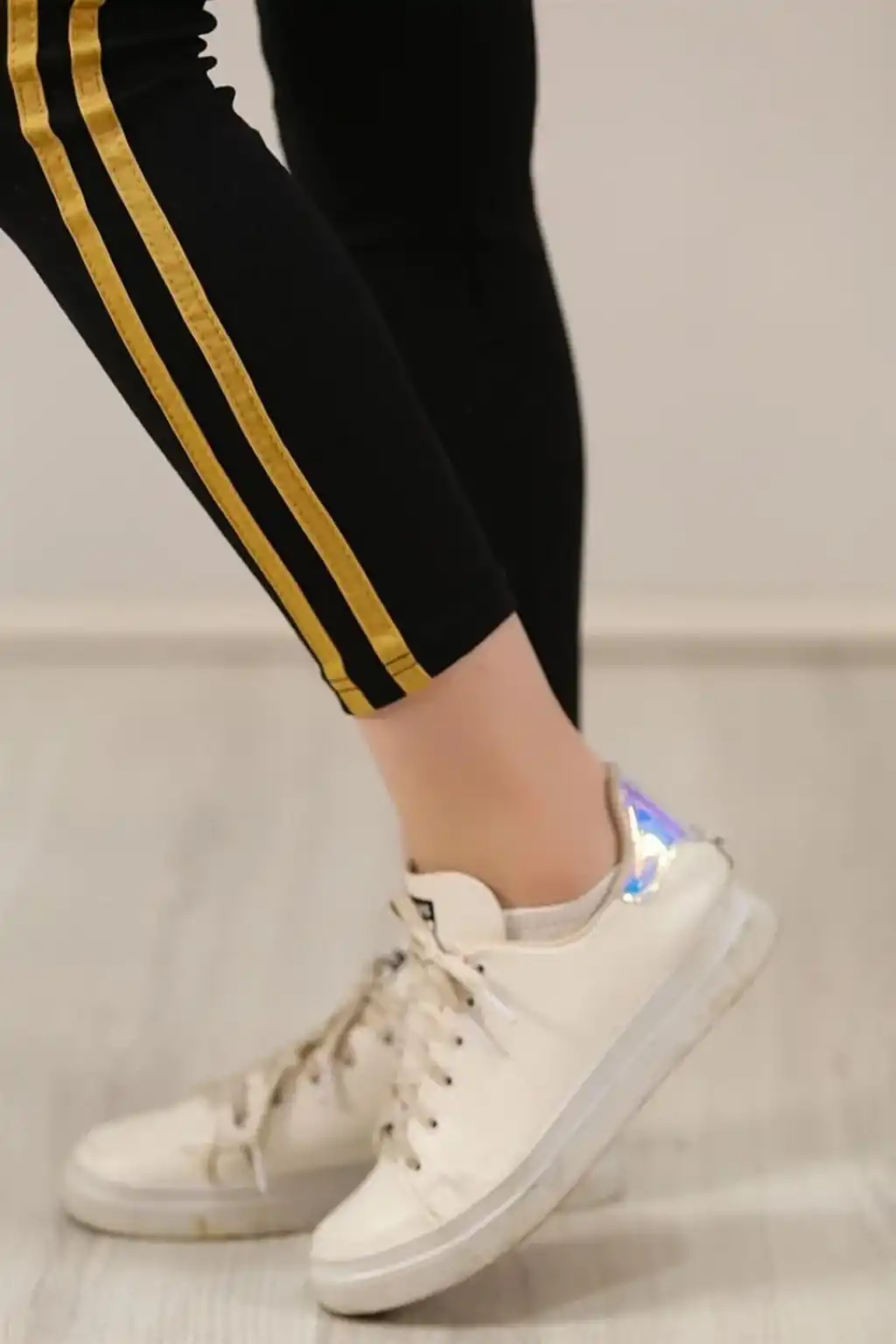 Kadın Likralı Yan Sarı Şeritli Detaylı Tayt - Siyah