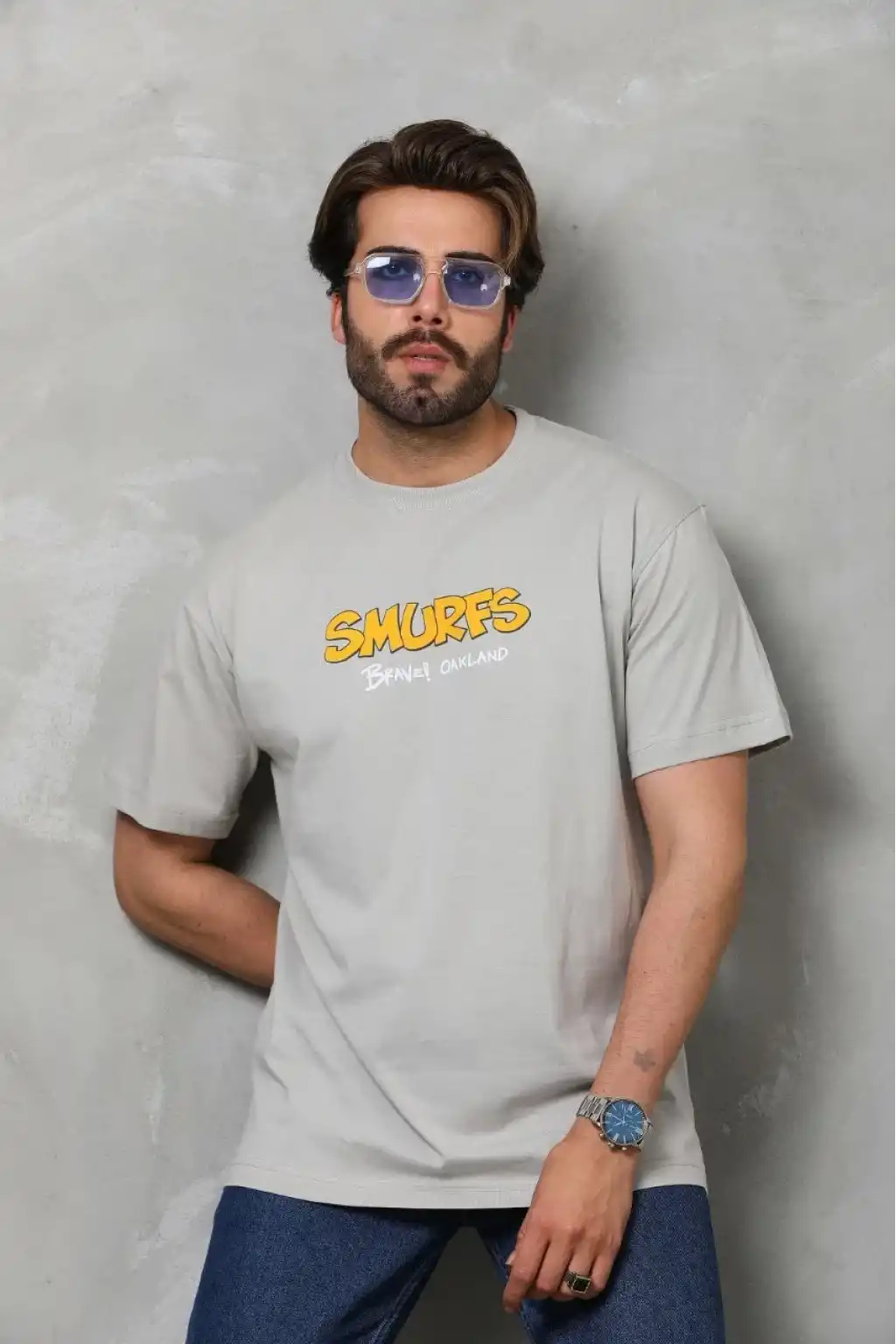 Erkek Oversize Baskılı Tişört – Golf GTI Retro Araba Desenli, Ön & Arka Dijital Baskı, Sokak Modası Stil - Gri
