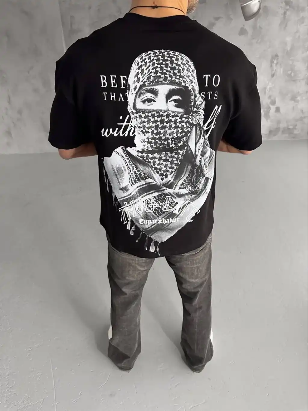 Benzersiz Sırt Baskılı Erkek Sokak Stili Bol Tişört - Nefes Alabilir Polyester, Makinede Yıkanabilir - Siyah