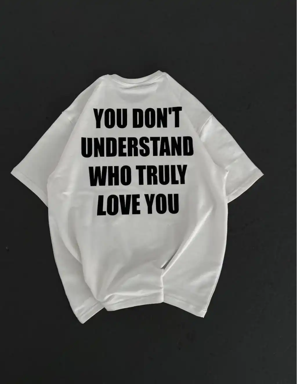 Unisex Bisiklet Yaka Baskılı Oversize T-Shirt - Beyaz