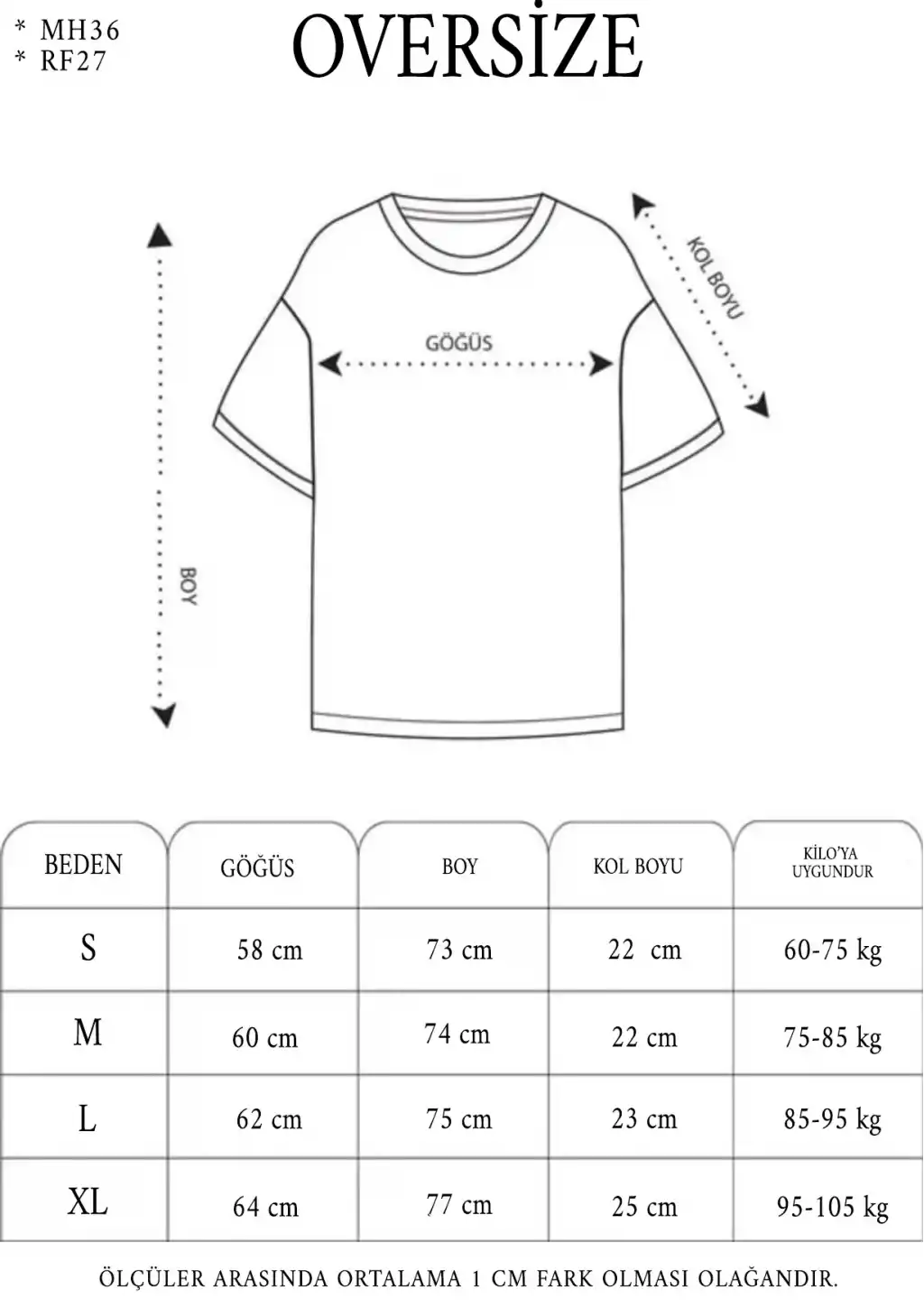 Unisex Bisiklet Yaka Baskılı Oversize T-Shirt - Siyah