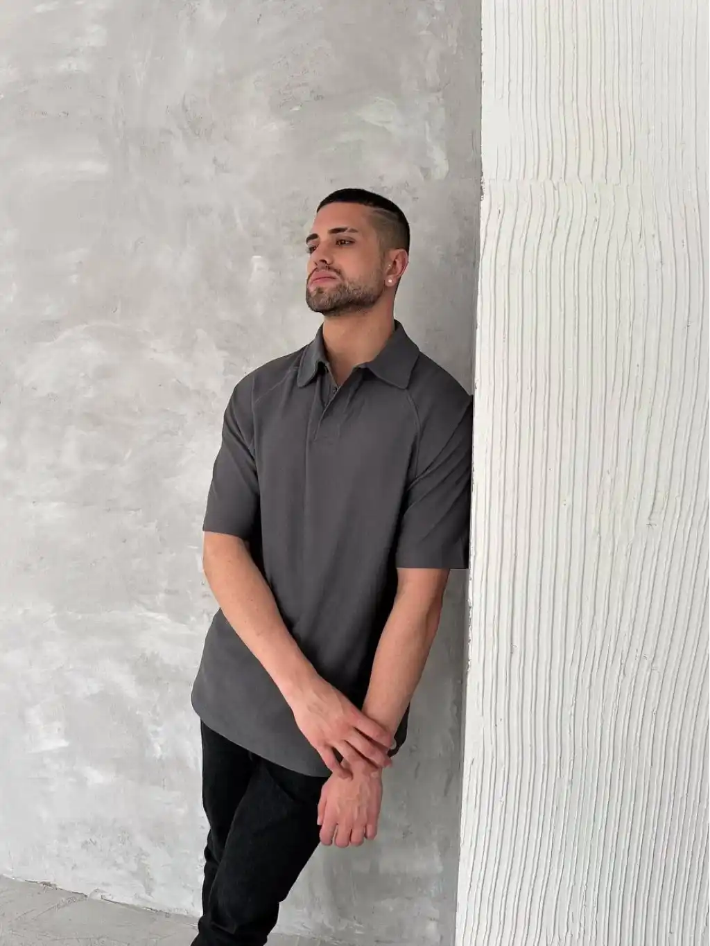 Yakalı Patlı Kısa Kol T-shirt - Antrasit