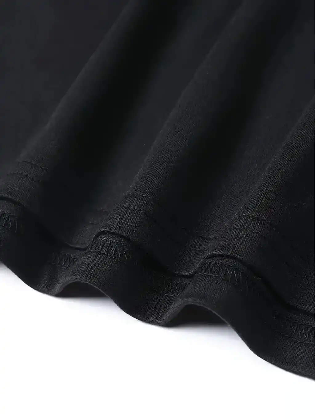 20/1 Penye Compack Baskılı Oversize Bisiklet Yaka Kısa Kol T-shirt - Siyah