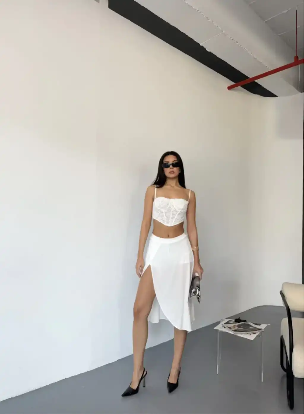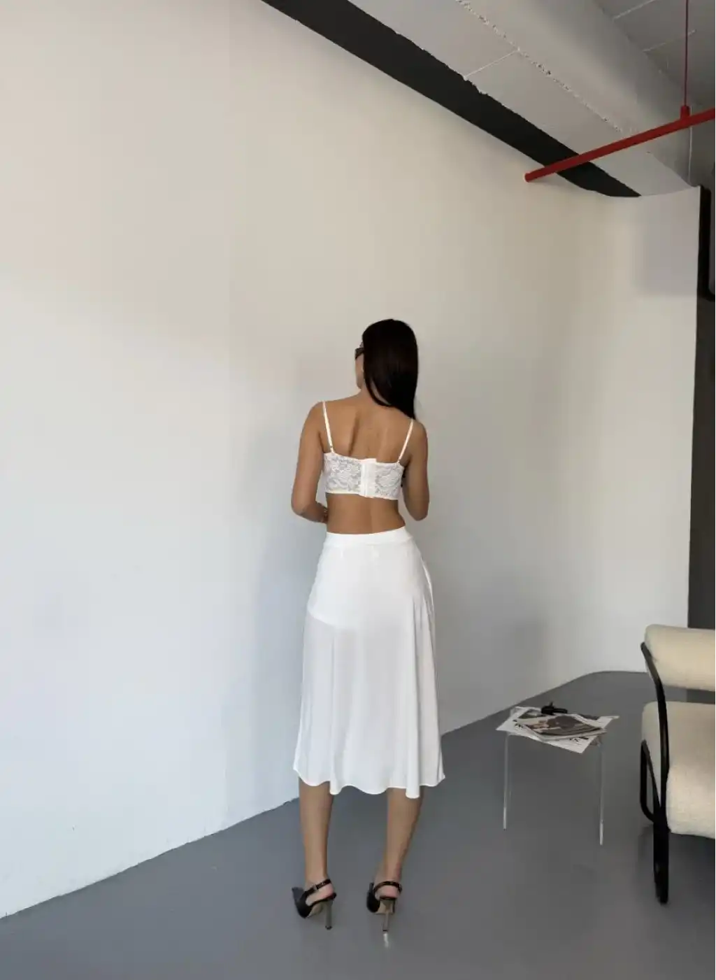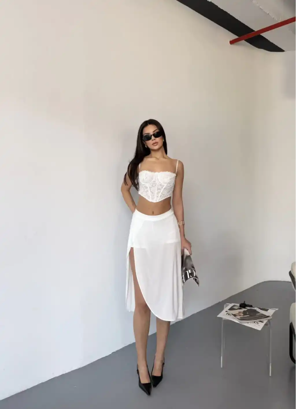 Çepli Şortlu Yırtmaçlı Etek - Beyaz