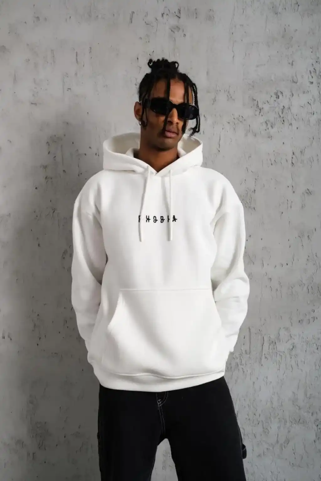 Erkek Premium Nakışlı Kapşonlu Sweatshirt Double Oversize Üç İplik Pamuklu - Siyah
