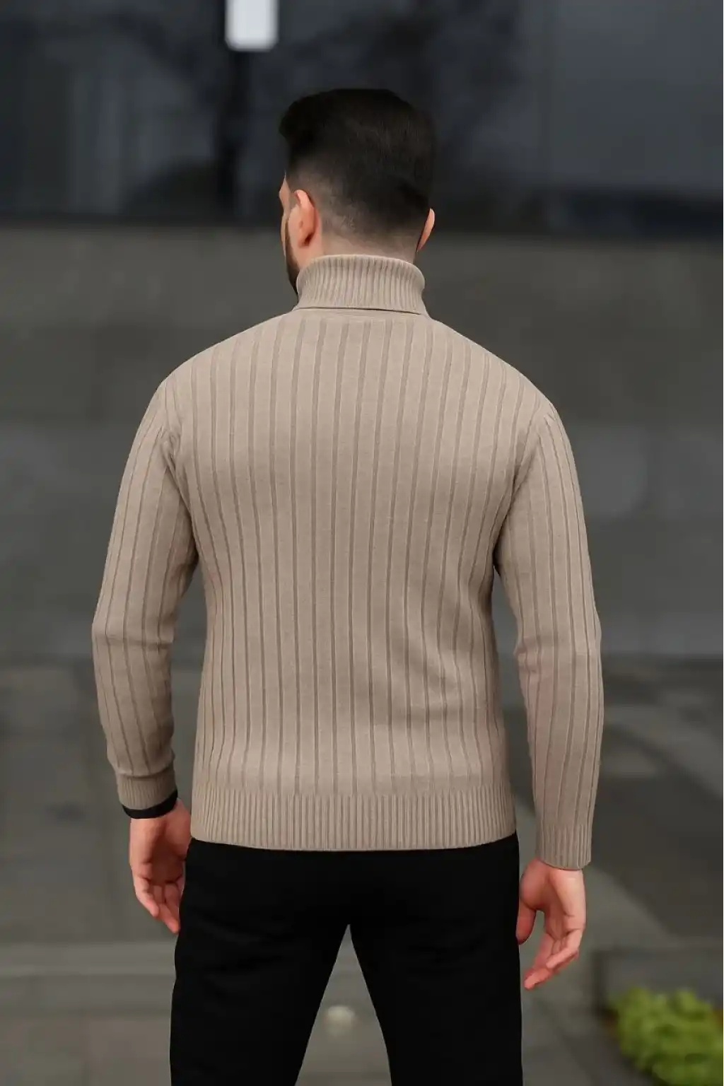 Erkek Fitilli Triko Kazak 2'li Set Bej Siyah Regular Balıkcı Yaka Tam Boğazlı Triko Seti Modeli Kazak