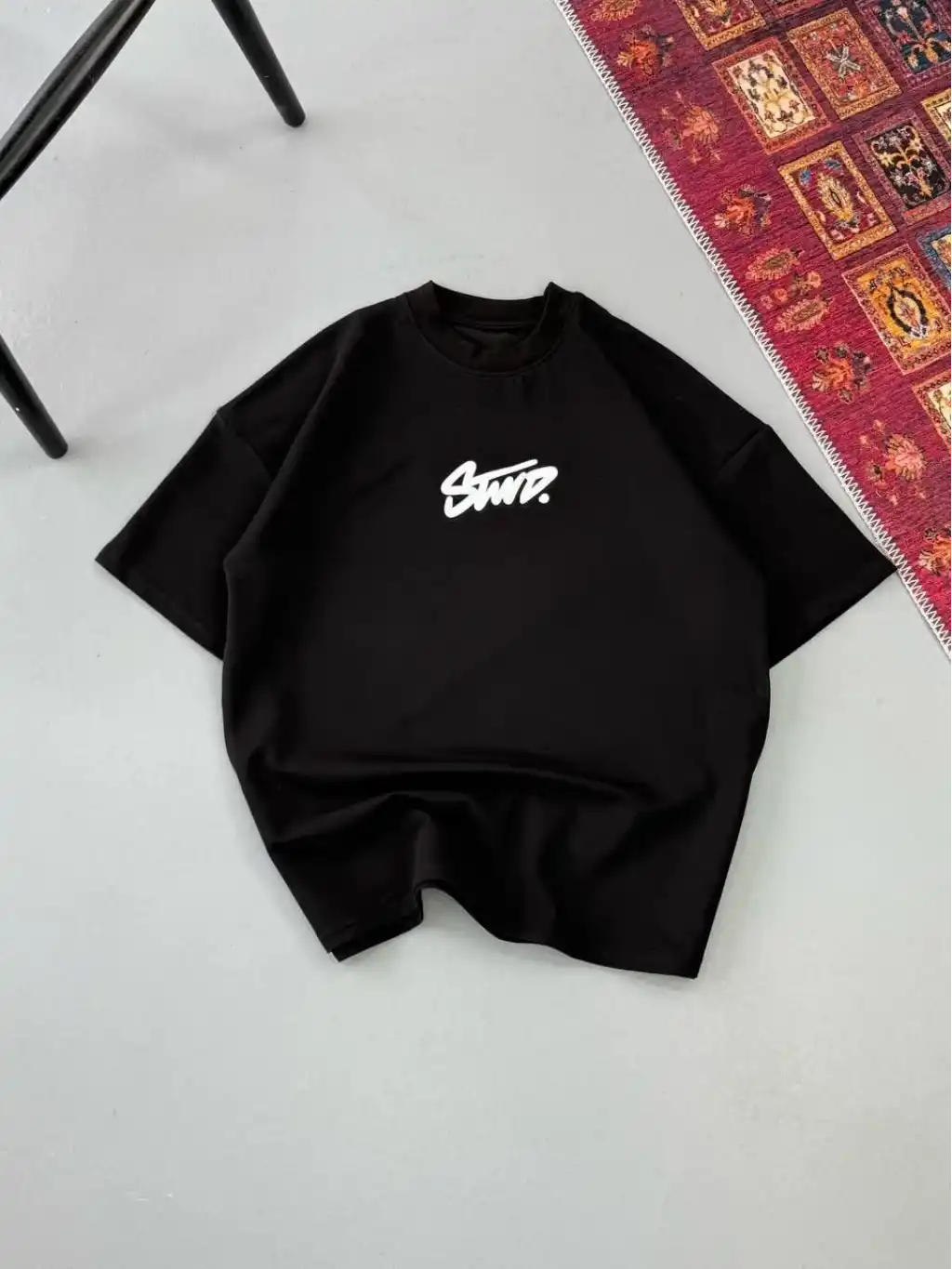 Erkek Baskılı Oversize T-shirt - Siyah
