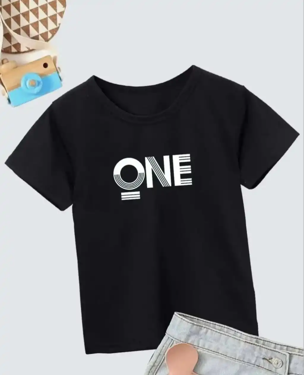Unisex Bisiklet Yaka Kısa Kol Baskılı Çocuk T-Shirt - Siyah