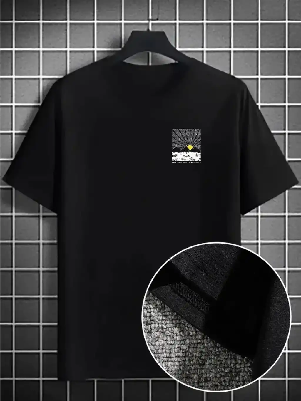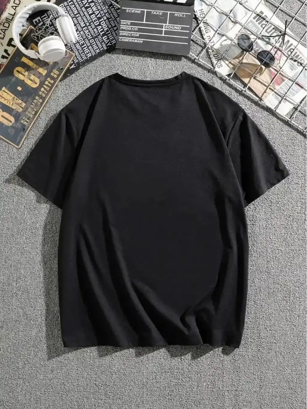 Eşsiz Baskı Tasarımlı Şık Büyük Beden Erkek Tişörtü - Rahat Polyester, Makinede Yıkanabilir, Yuvarlak Yaka - Her Mevsim İçin Mükemmel - Siyah