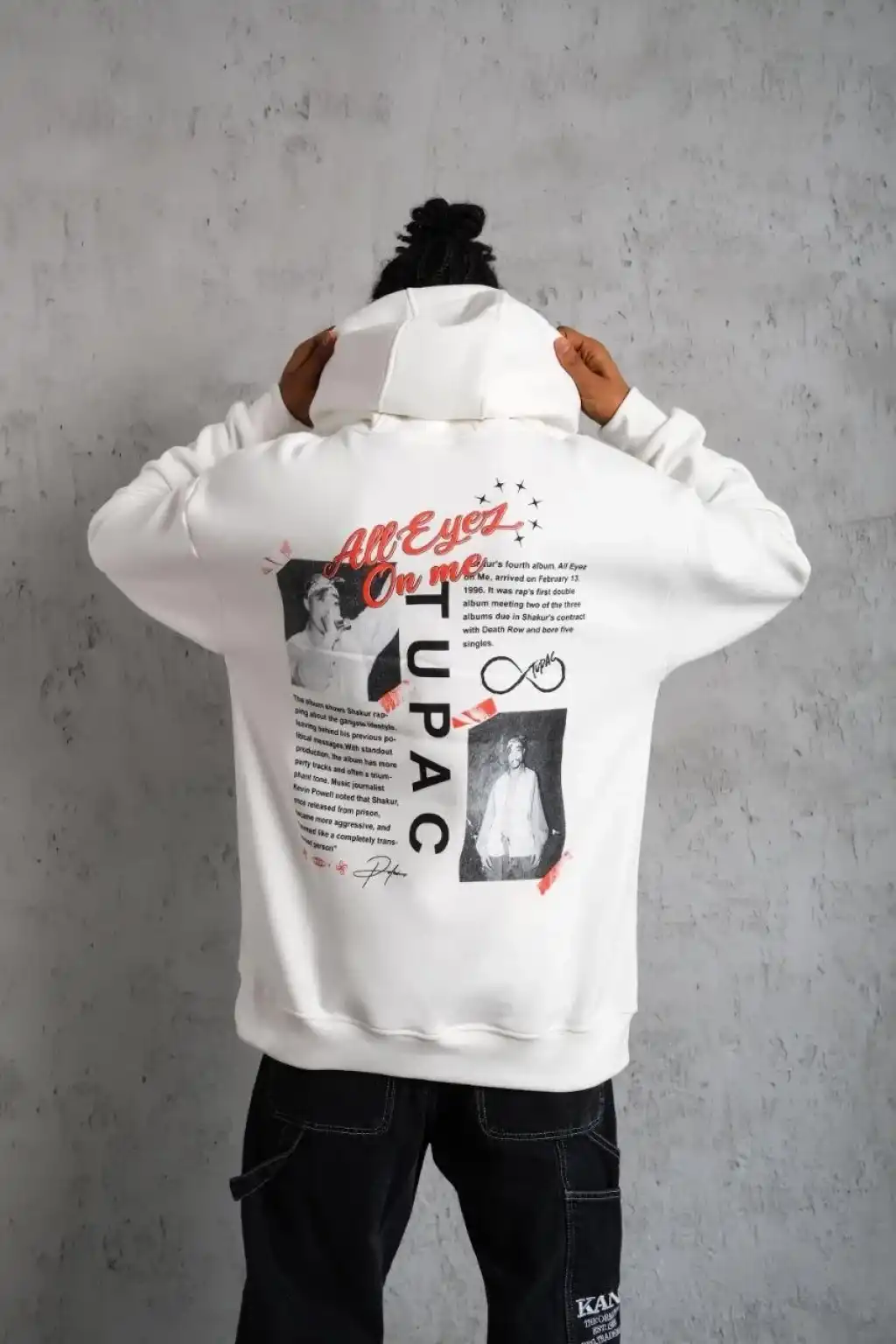 Erkek Ön Arka Baskılı Kapşonlu Sweat - Beyaz