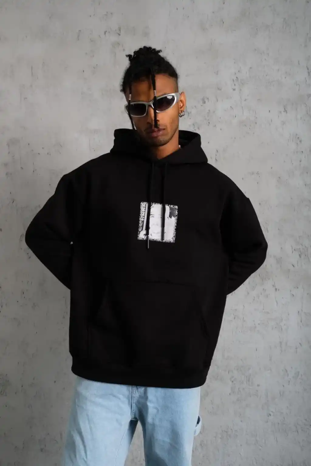 Erkek Double Oversize Kapüşonlu Sweatshirt 3 İplik Pamuklu Göğüs Nakışlı Premium Kalite – Siyah