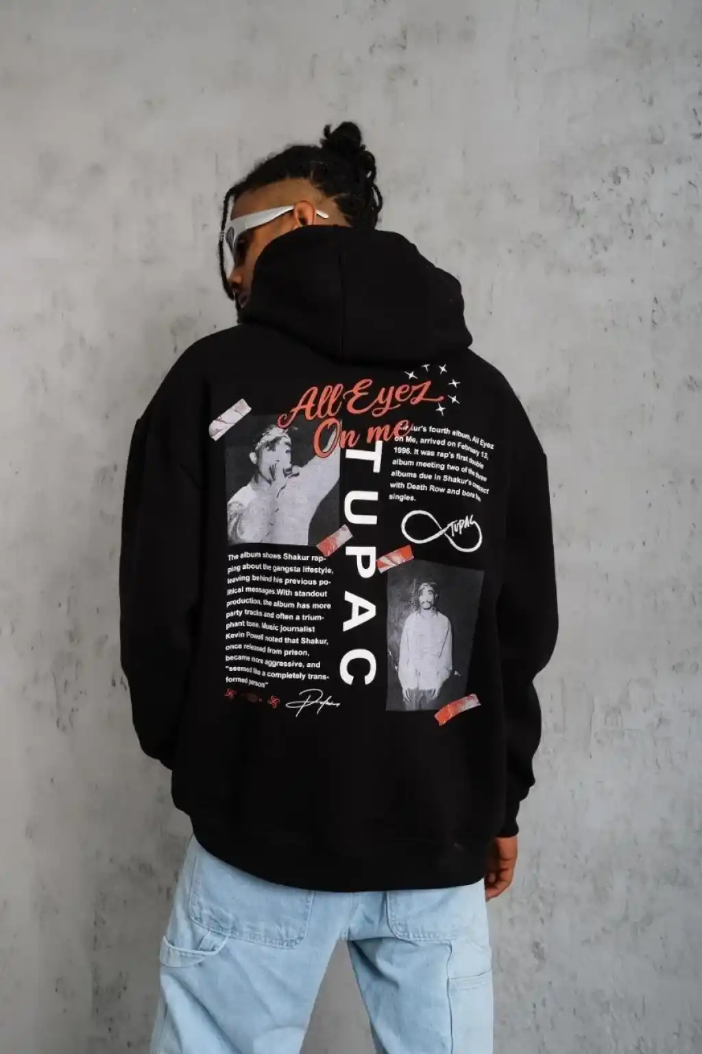 Erkek Ön Arka Baskılı Kapşonlu Sweat - Siyah