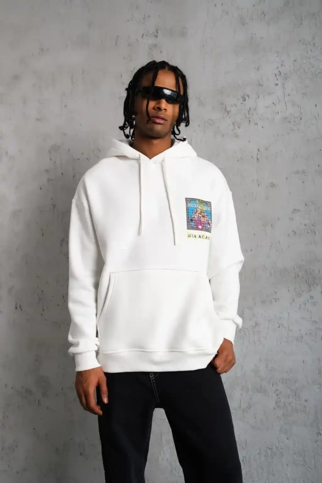 Erkek Patel Six Baskılı Kapüşonlu Sweat - Beyaz