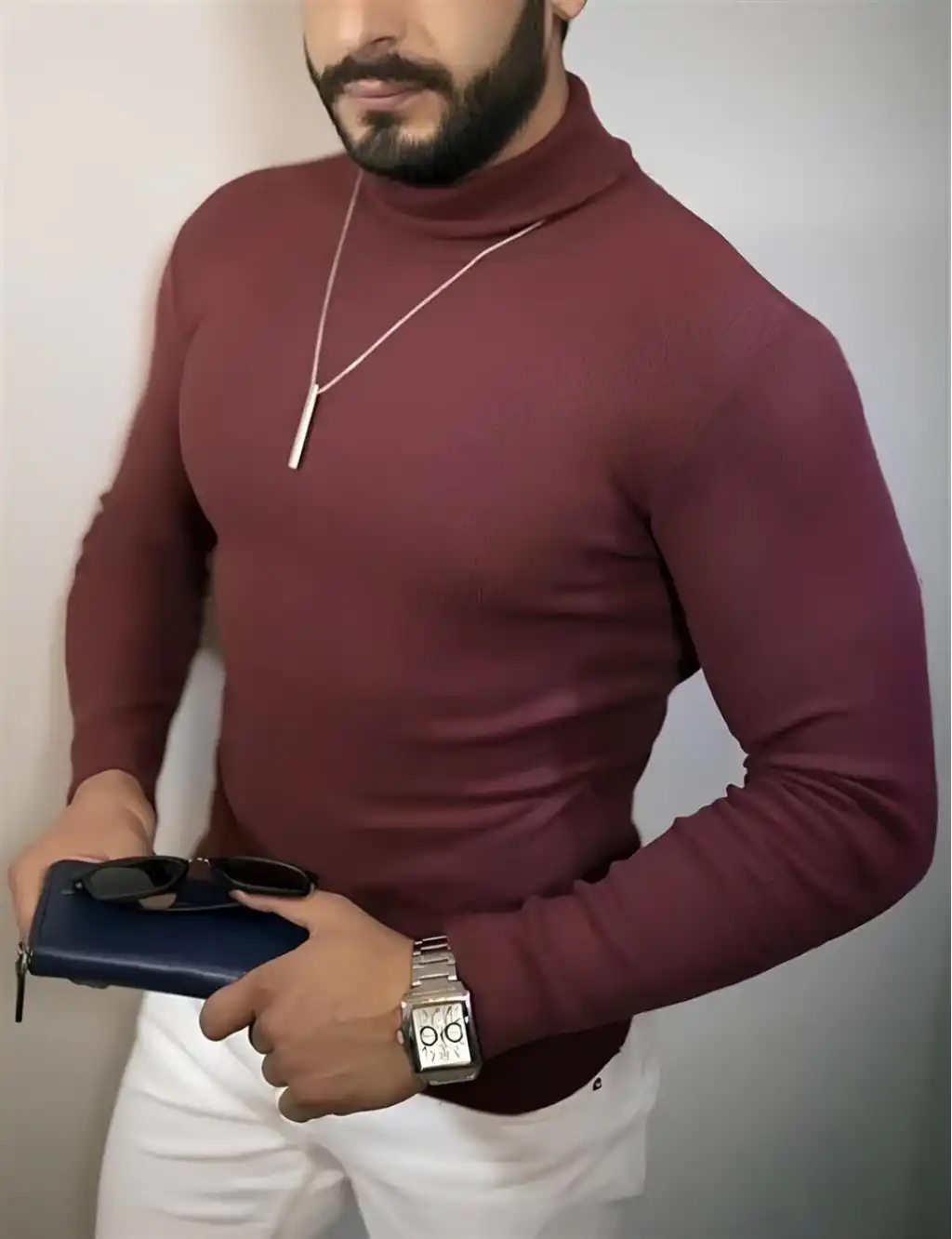Erkek Kaşkorse Boğazlı Full Likralı Fitilli Body Kazak - Bordo