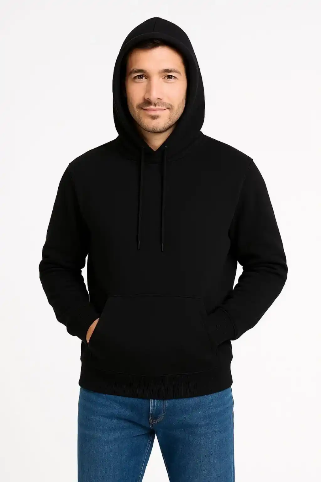 Erkek Üç İplik Kapüşonlu Kanguru Cepli SweatShirt hoodie - Siyah