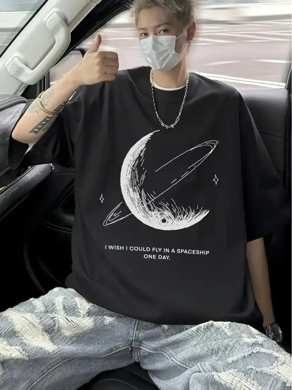 Benzersiz Sırt Baskılı Erkek Sokak Stili Bol Tişört - Nefes Alabilir Polyester, Makinede Yıkanabilir - Siyah