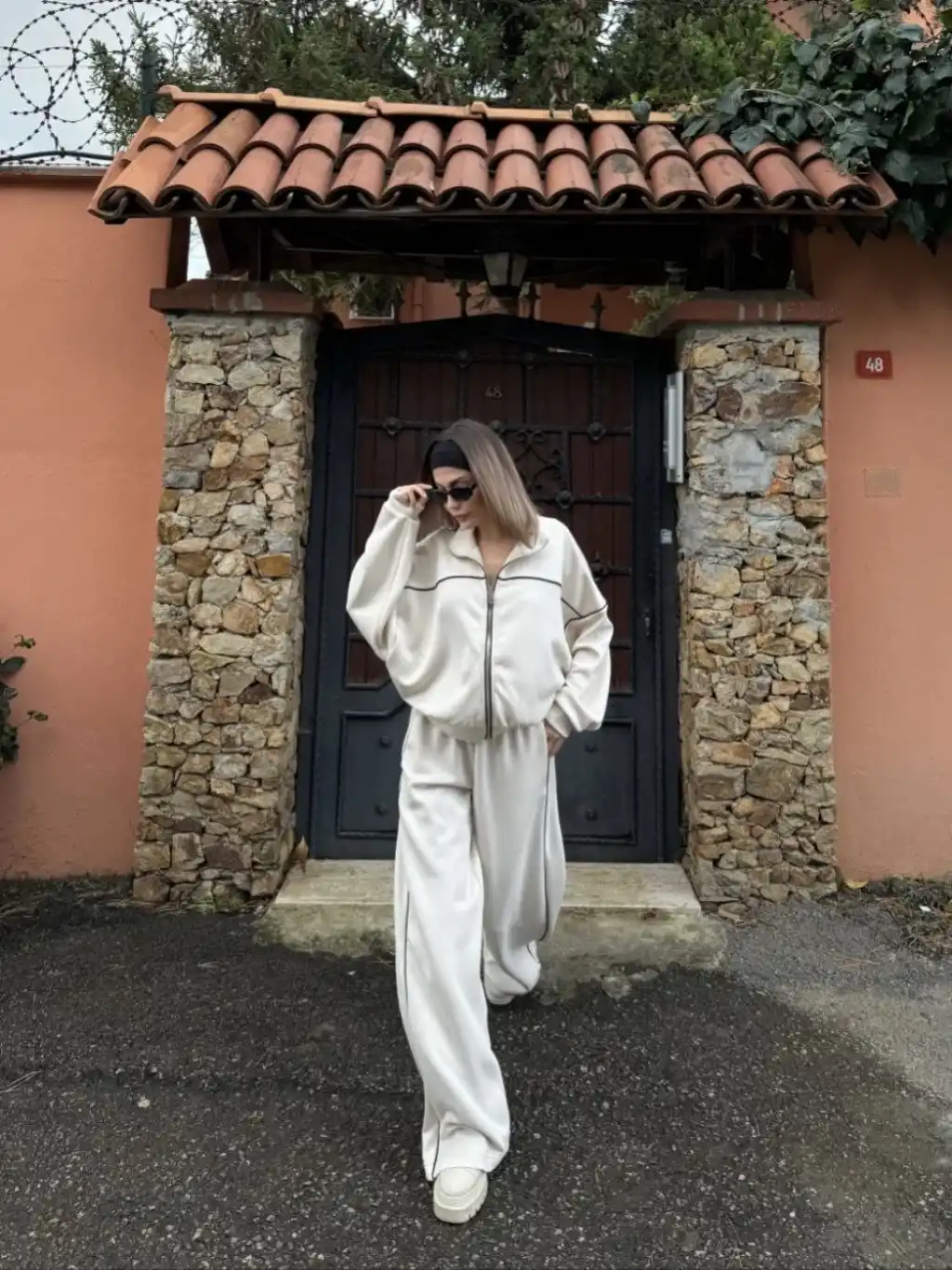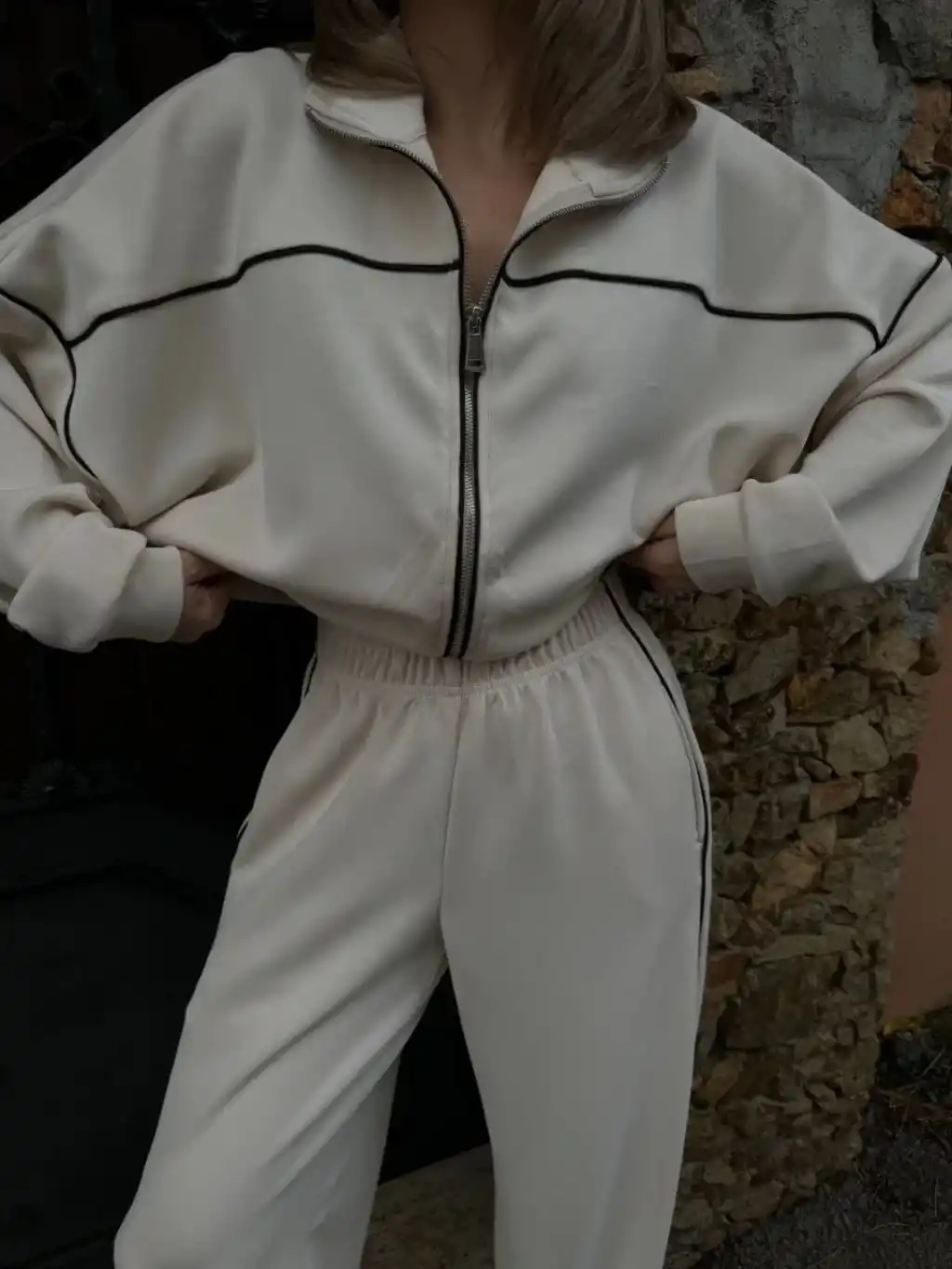 Fermuarlı Eşofman Pantolon İkili Takım - Beyaz
