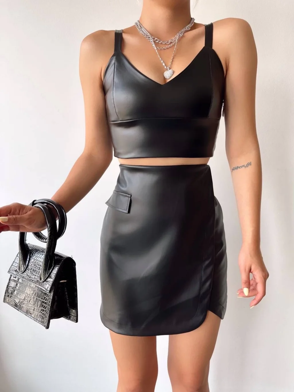 Komple parçalı deri etek siyah h26441